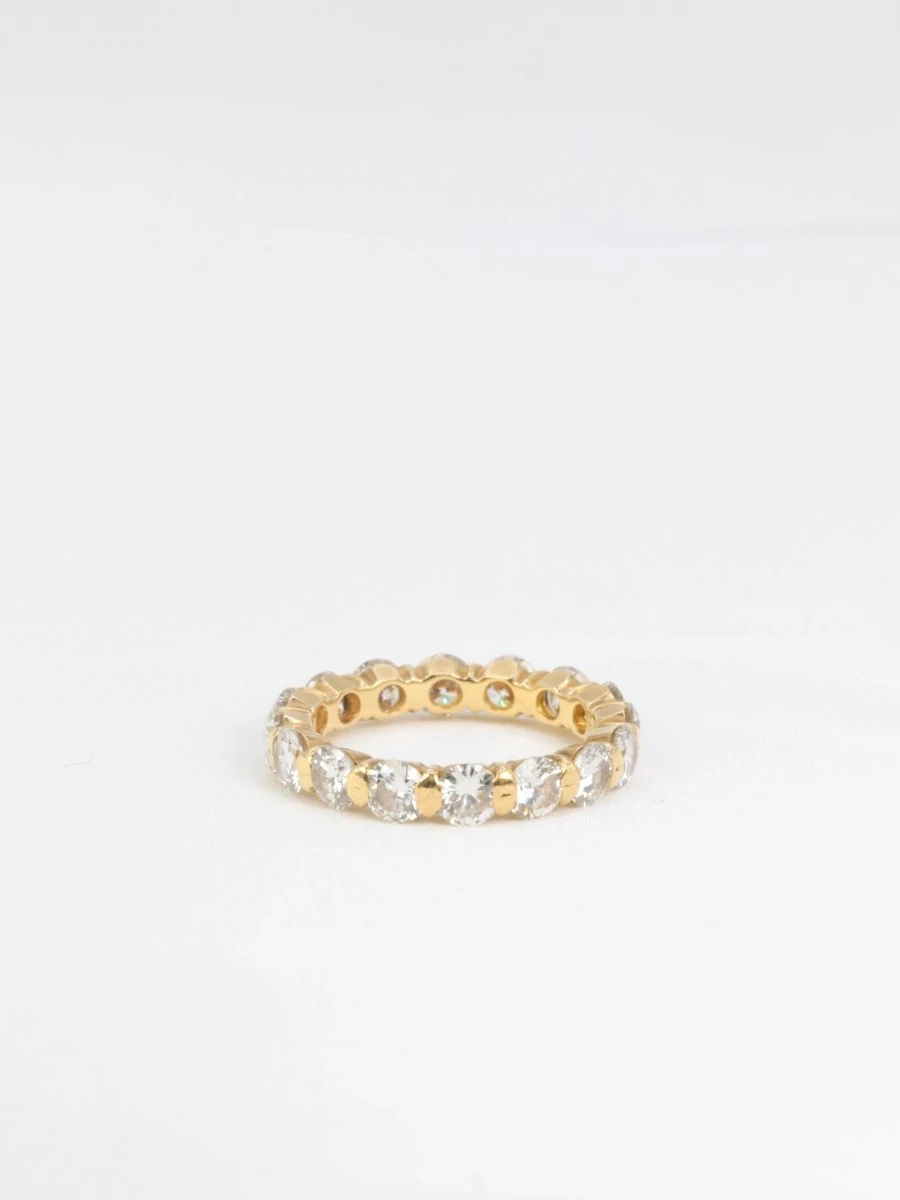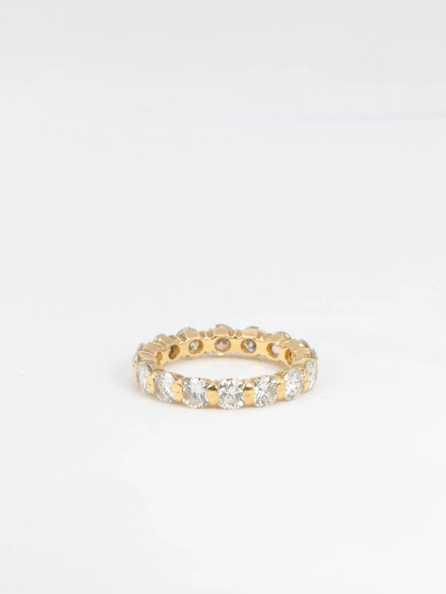 Alliance américaine en or 18k (750°/°°) sertie de 16 diamants taille brillant pesant environ 0,23ct chacun (diamètre 4mm), soit un poids total d’environ 3,7 carats de qualité estimée F/G VS. Travail probablement français des années 1980.