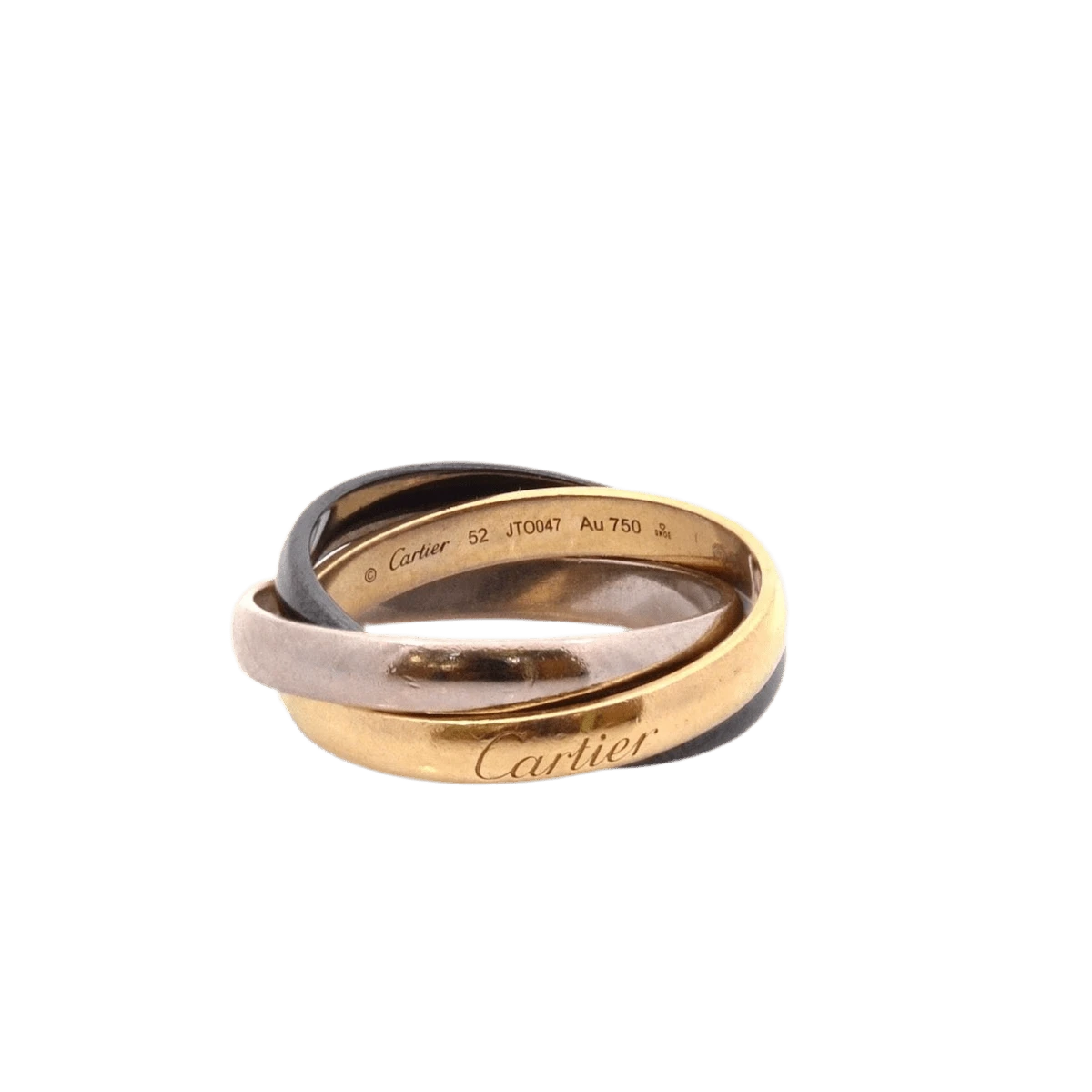 Bague Alliance CARTIER « Trinity » En Or Jaune, Or Blanc, Or Rose Et Céramique