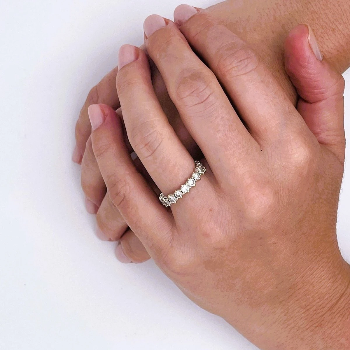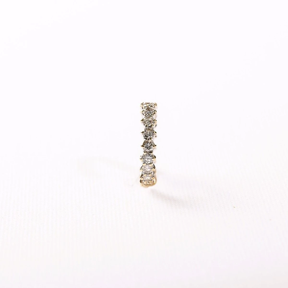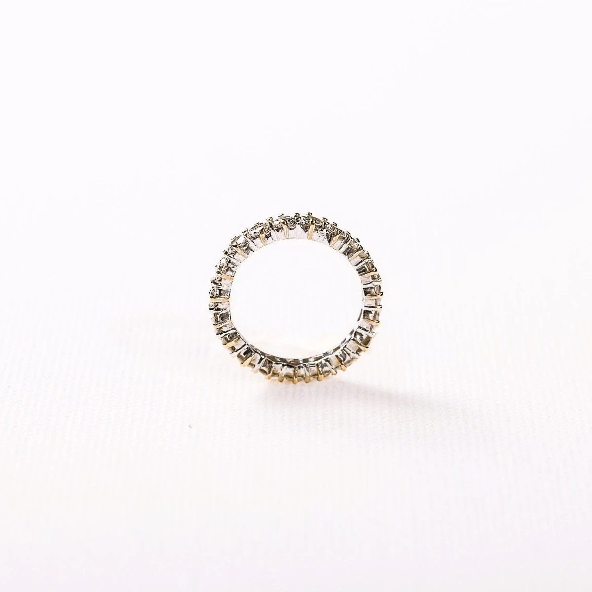 Bague Alliance américaine en or jaune et blanc 18 carats, sertie de 19 diamants de 0.12 carats chacun. Travail français.
