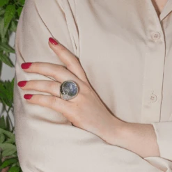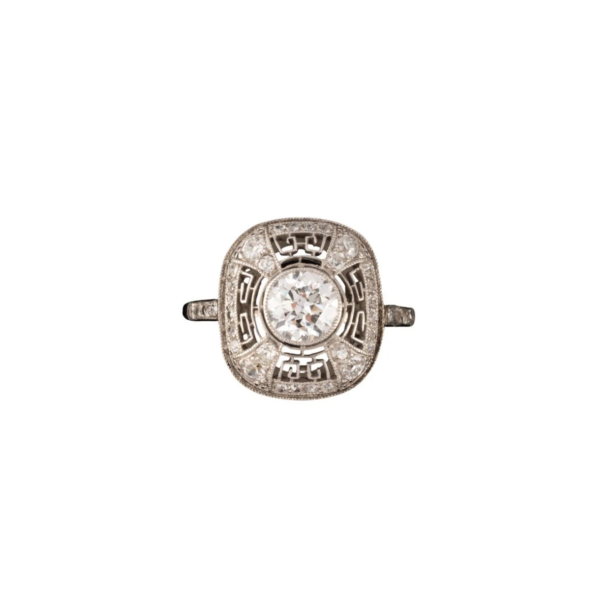 Bague en or gris »Art Déco » sertie d’un diamant central dans un entourage de diamants.