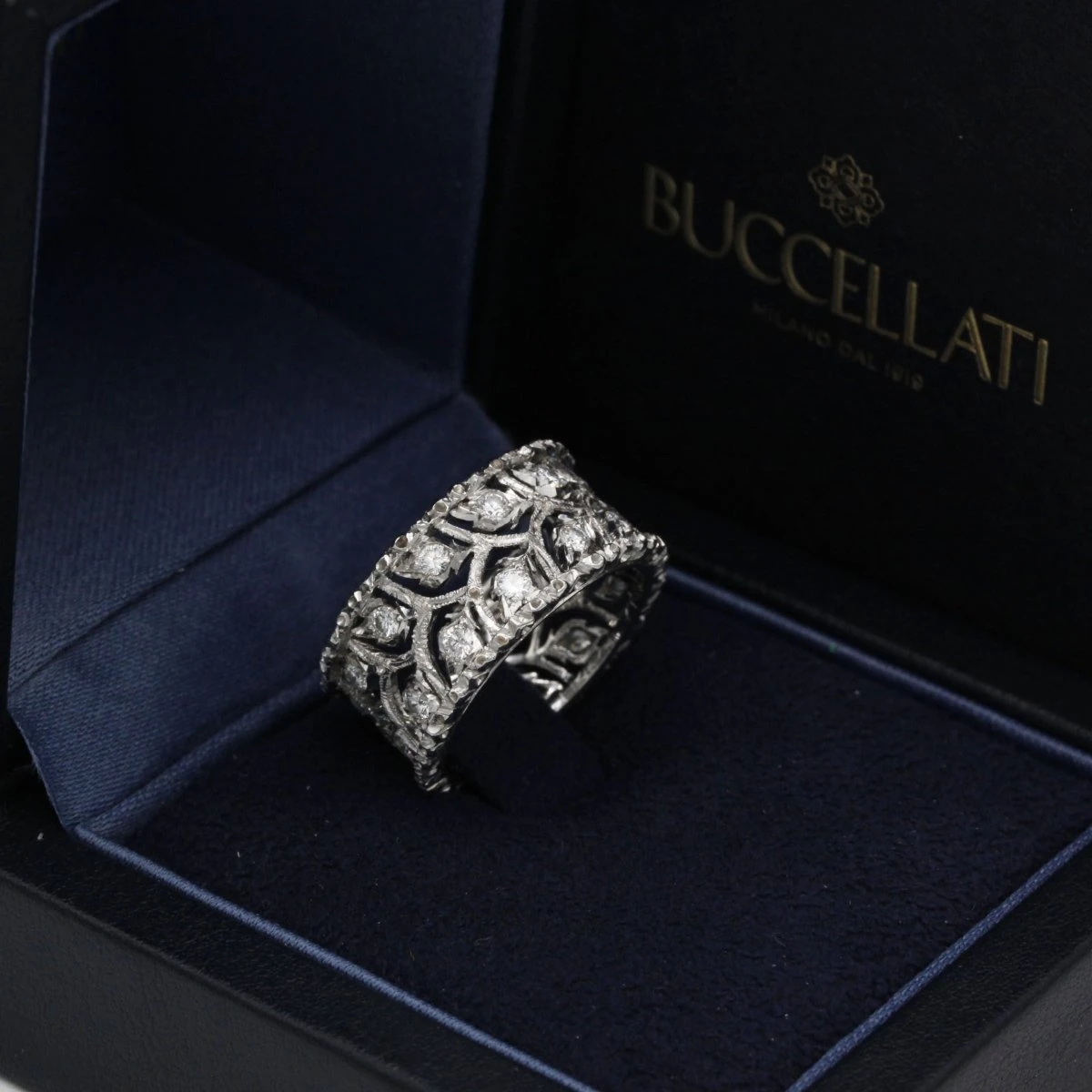 Bague Bandeau BUCCELLATI « Eternelle Ramage » En Or Blanc Et Diamants