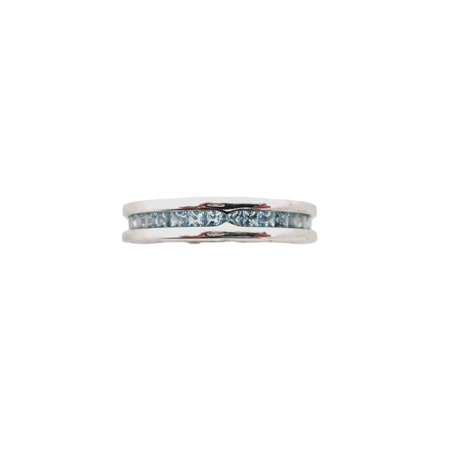 Bague BULGARI B.Zero1 en or blanc 18K (750/1000) sertie d’une ligne de topazes bleues calibrées. Polie et rhodiée à neuf.