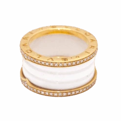 Bague BVLGARI « B.Zero1 » En Or Rose, Céramique Et Diamants