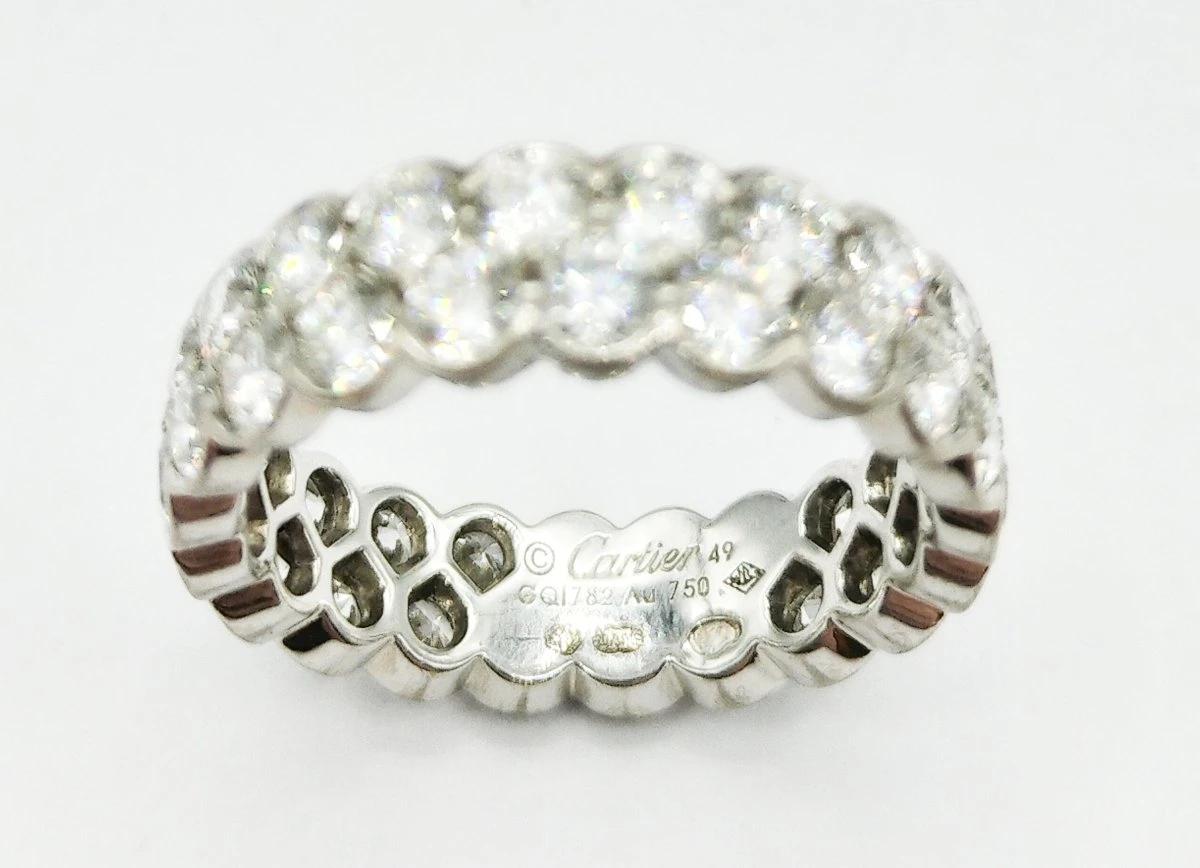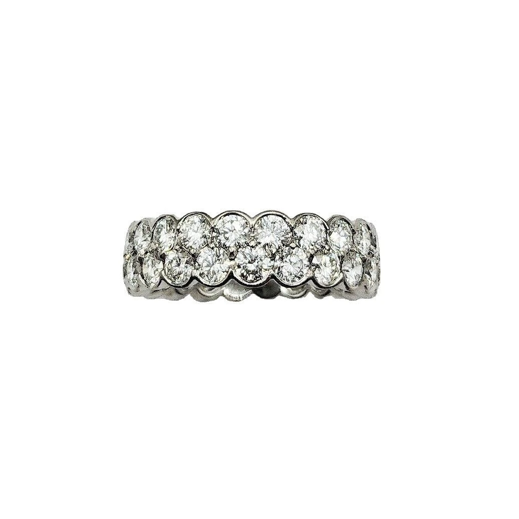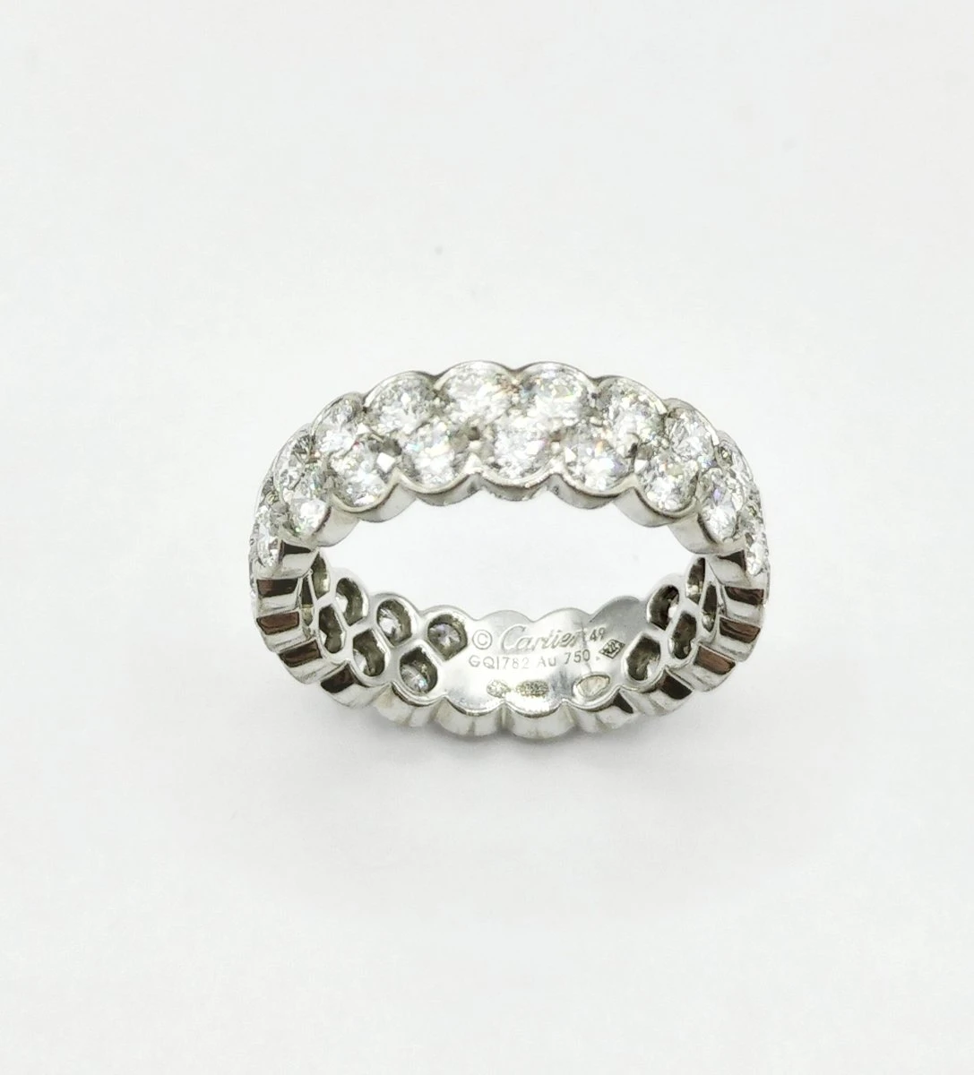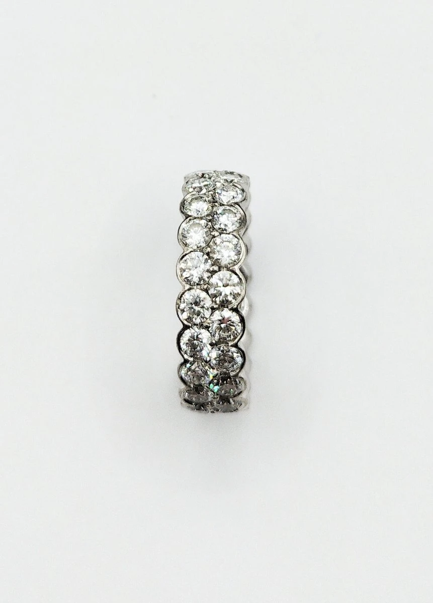 Ravissante bague CARTIER modèle « Broderie » en or blanc 18 carats sertie sur deux rangées de 49 diamants. Numérotée GQI782.