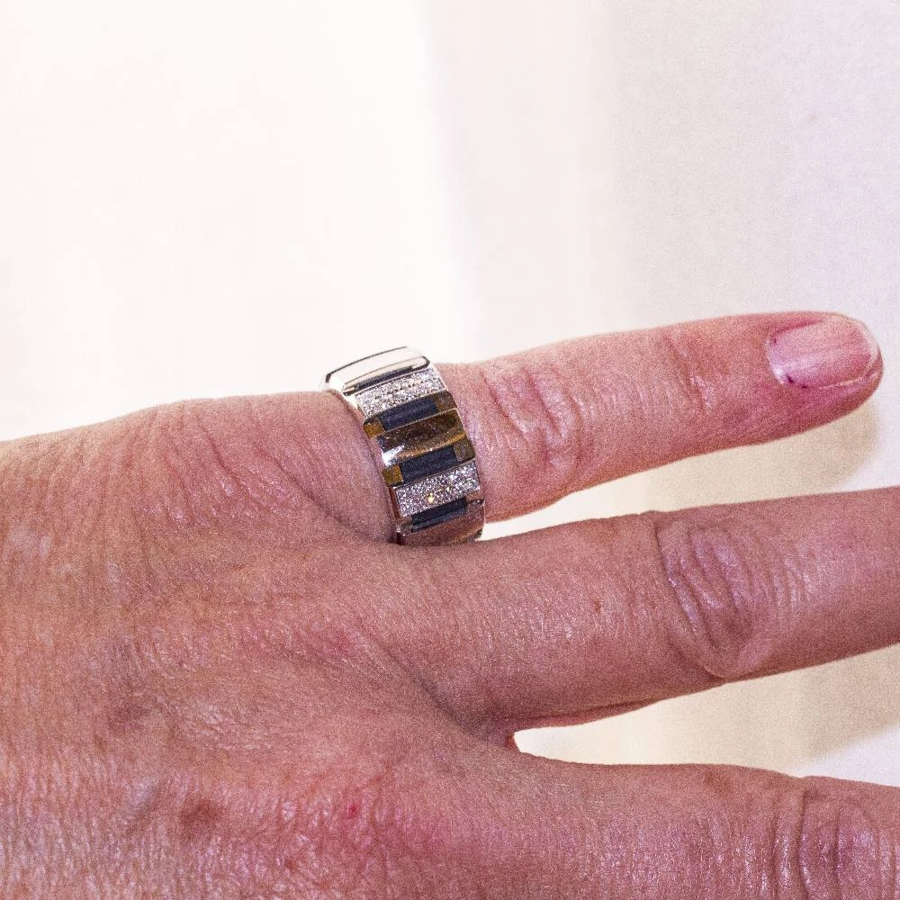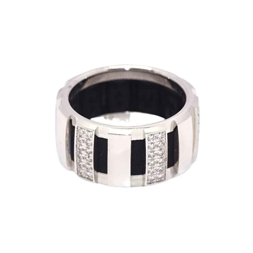 Bague CHAUMET, collection CLASS ONE en or blanc et caoutchouc noir avec diamants pour femme (avec boite d’origine et non portée) : Taille 14, cette bague ne peut être redimensionnée : 1,0cm de largeur : 1,0cm : Or blanc 18 carats : 10,11 grammes :