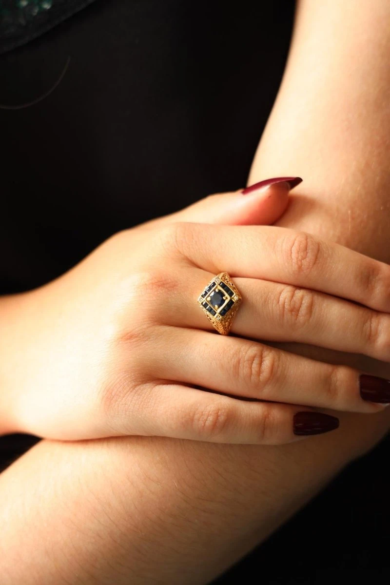 Bague Chevalière En Or Jaune Et Saphirs