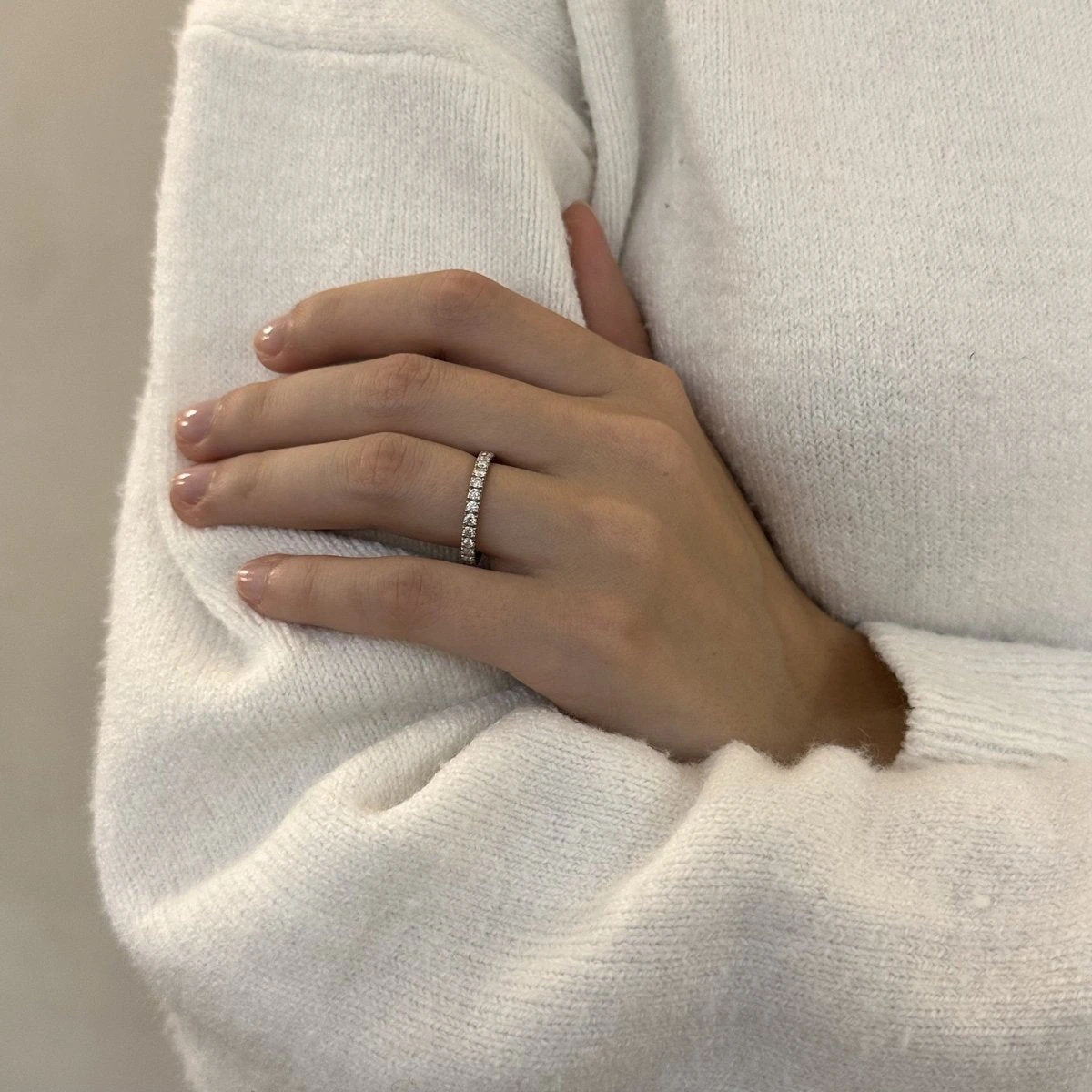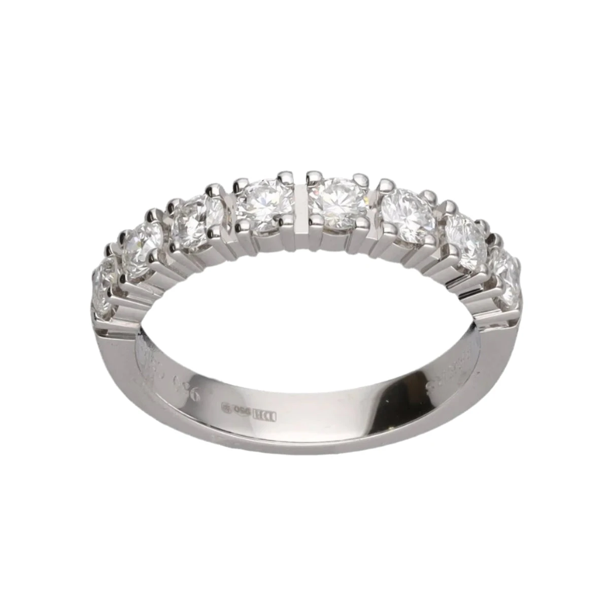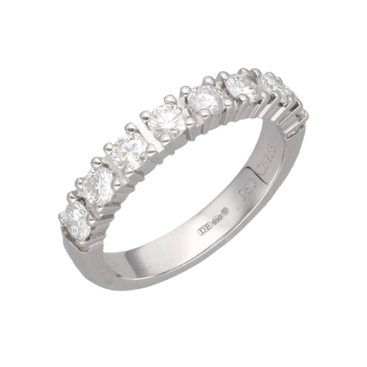 Bague Demi-Alliance DE BEERS en platine sertie sur 4 griffes de 8 diamants taille brillant