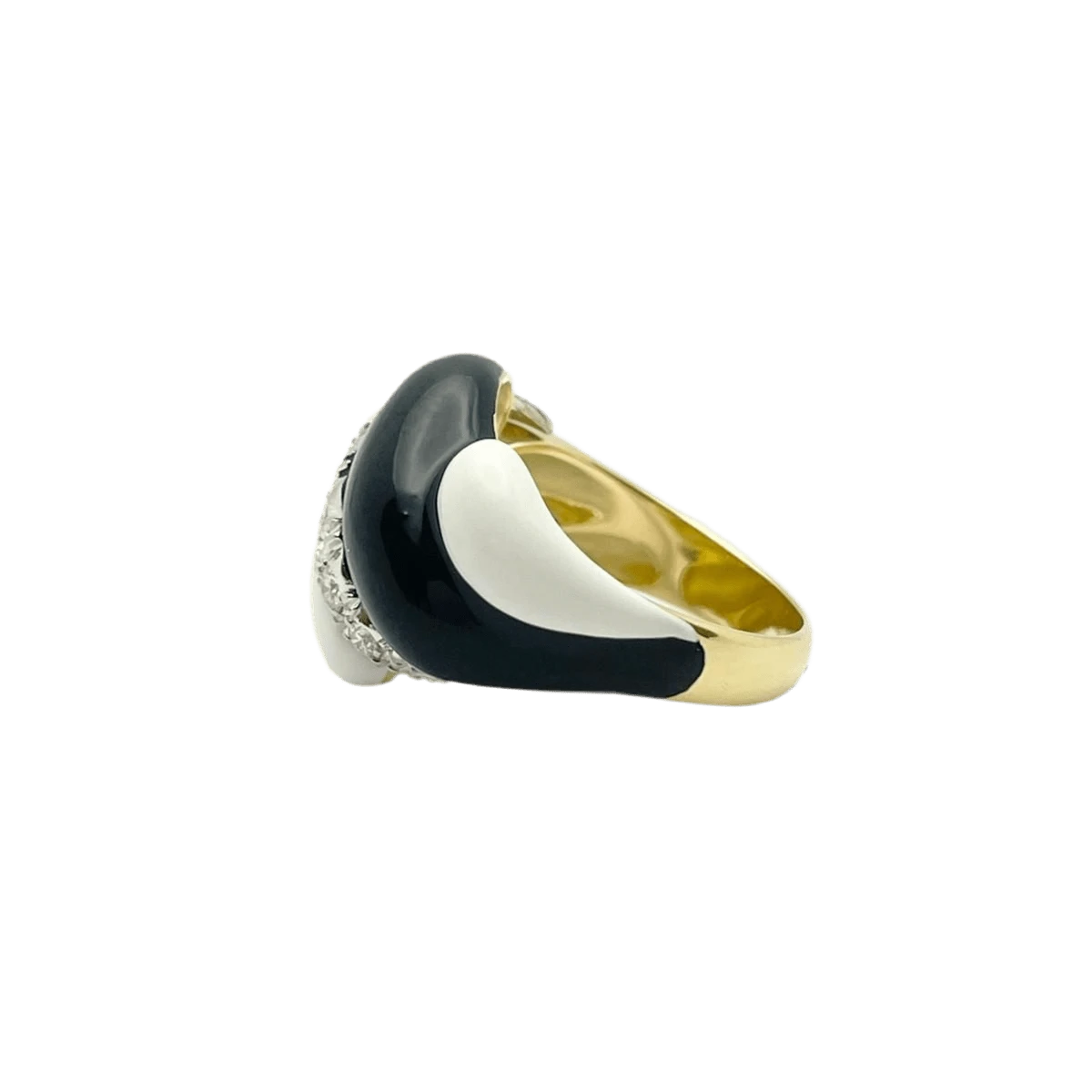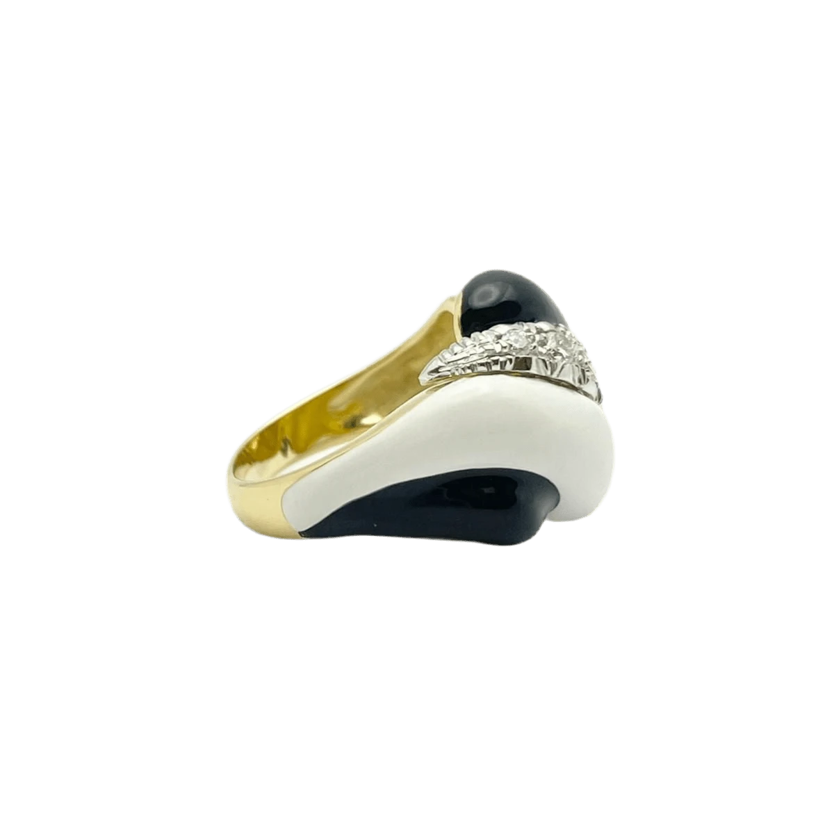 Bague Dôme en or blanc et or blanc 18 carats, ornée d’émaux et de diamants naturels ronds de taille brillant