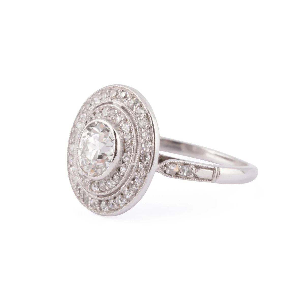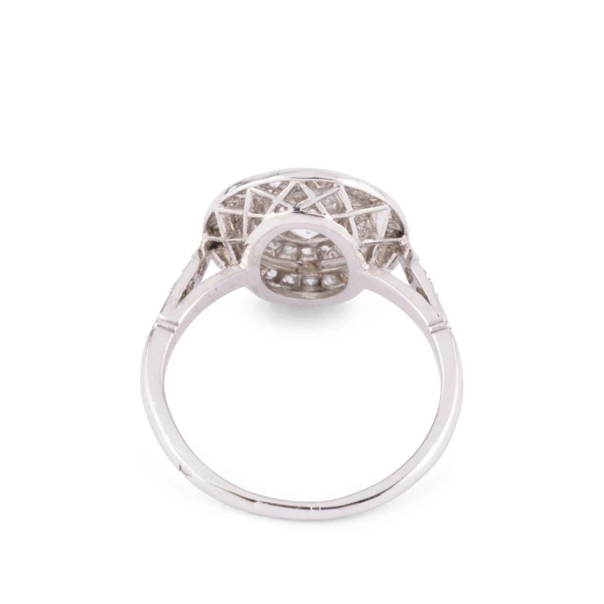 Bague double entourage de diamant en platine en son centre un diamant taille ancienne d’environ 0,80cts.