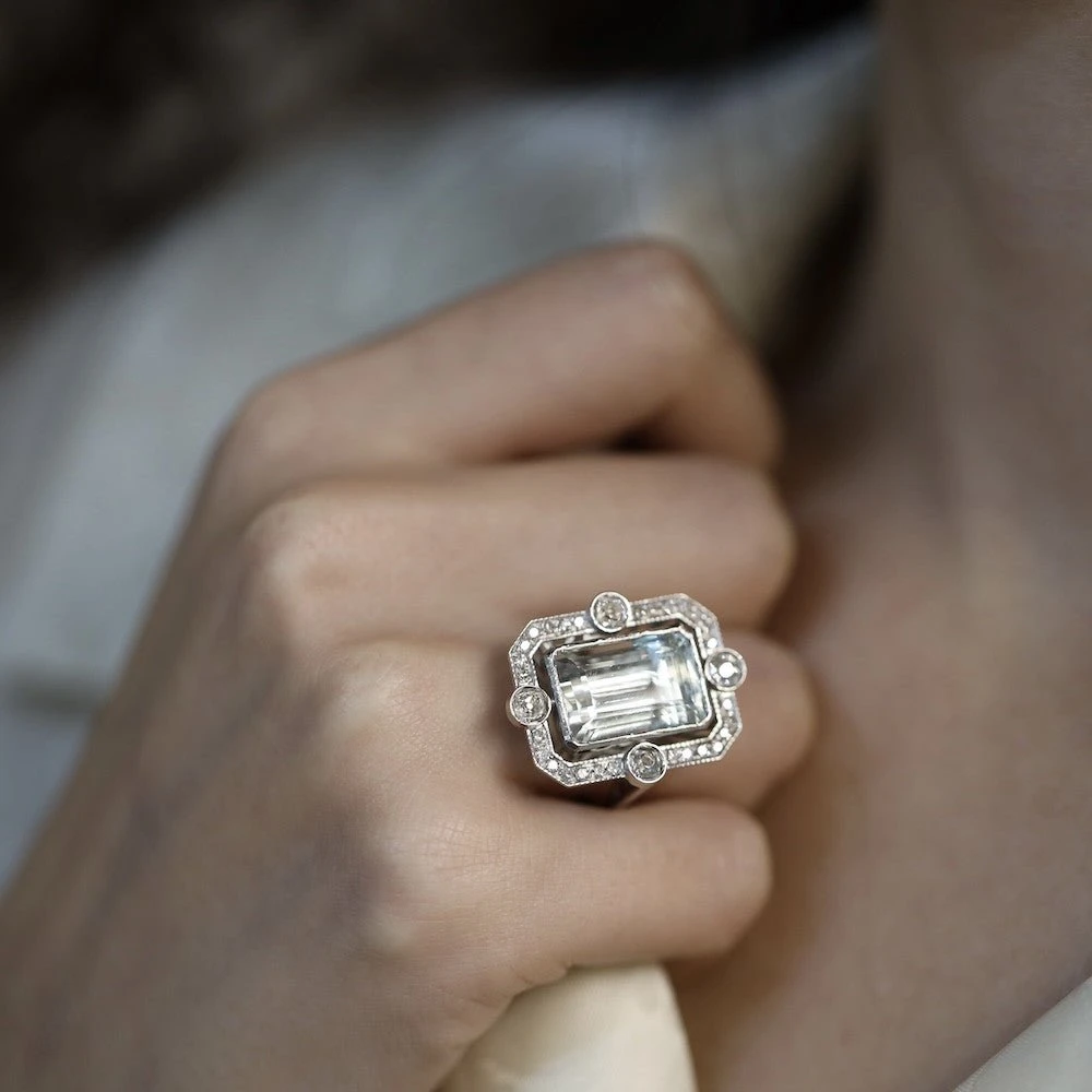 Bague En Or Blanc Et Aigue Marine