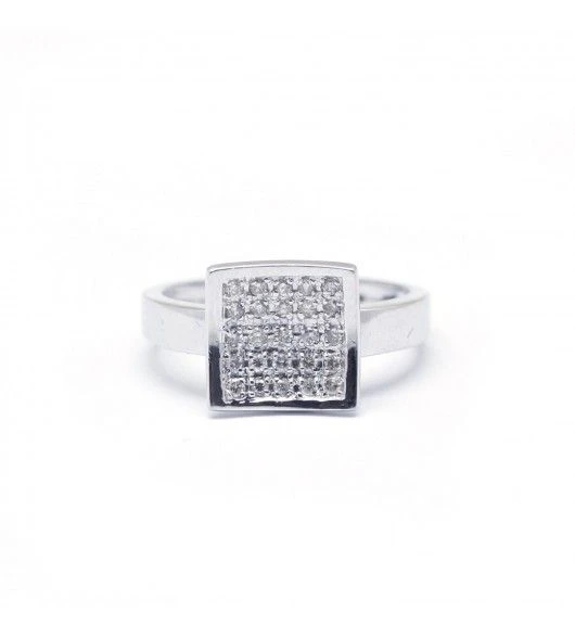 Bague en or blanc 18 carats pavée de 25 petits diamants.