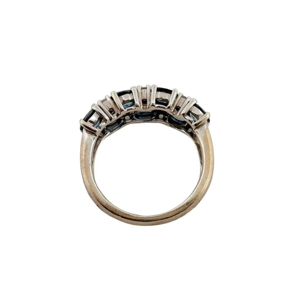 Bague en or blanc 18 carats ornée de saphirs et diamants. La bague sera confié à notre atelier pour un rhodiage.