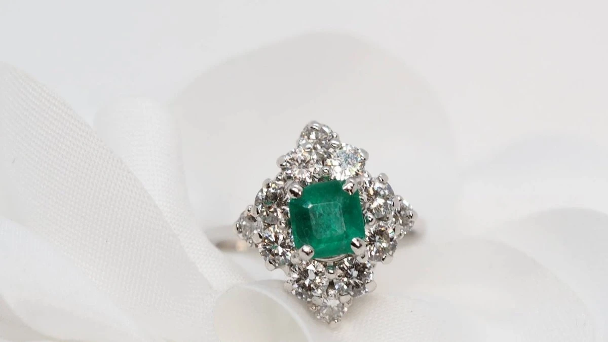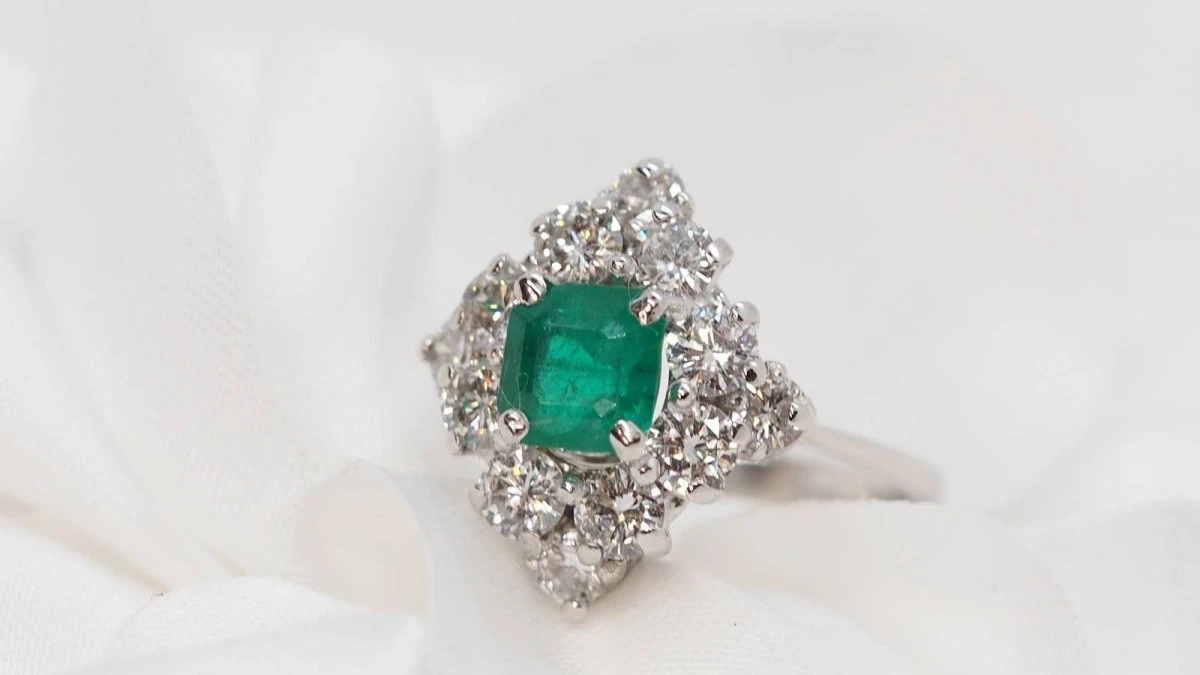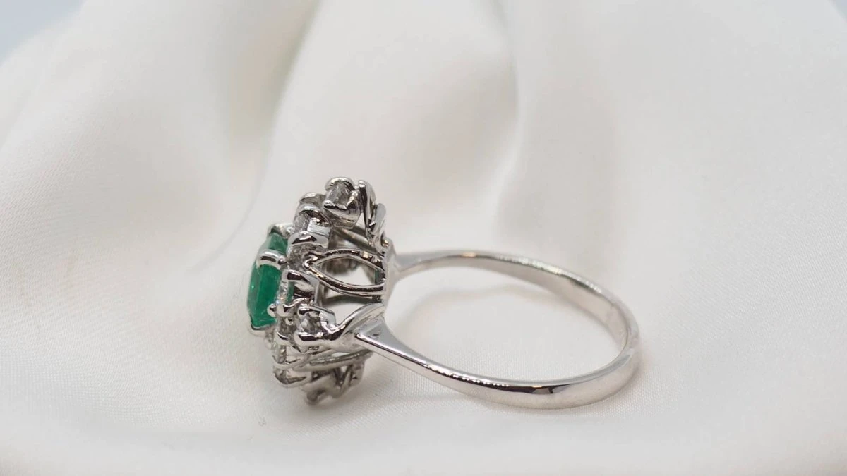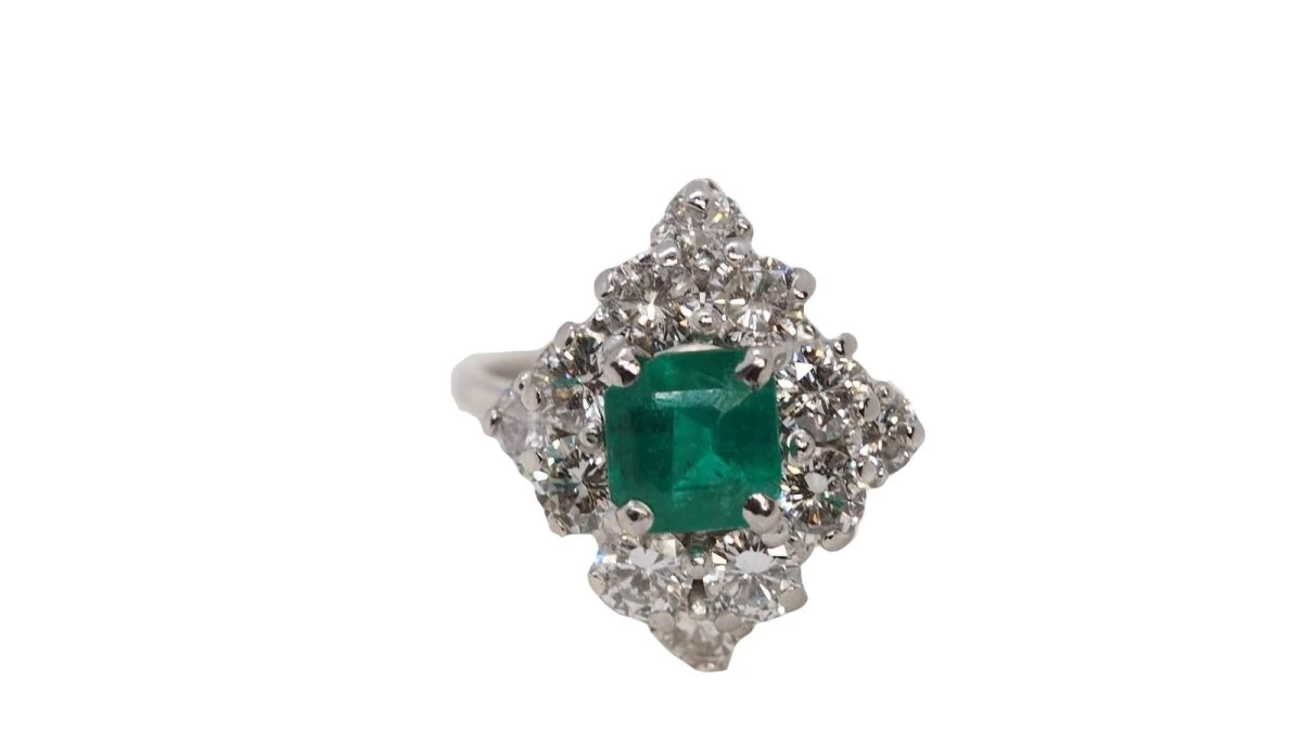 Bague En Or Gris, émeraude Et Diamants