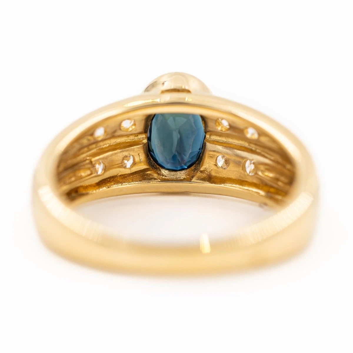 Bague En Or Jaune, Diamants Et Saphir