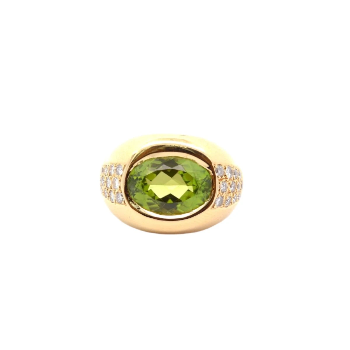 Bague Dôme en or jaune 18 carats, péridot de 8 carats sertie de 24 diamants