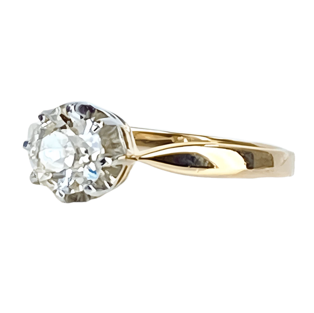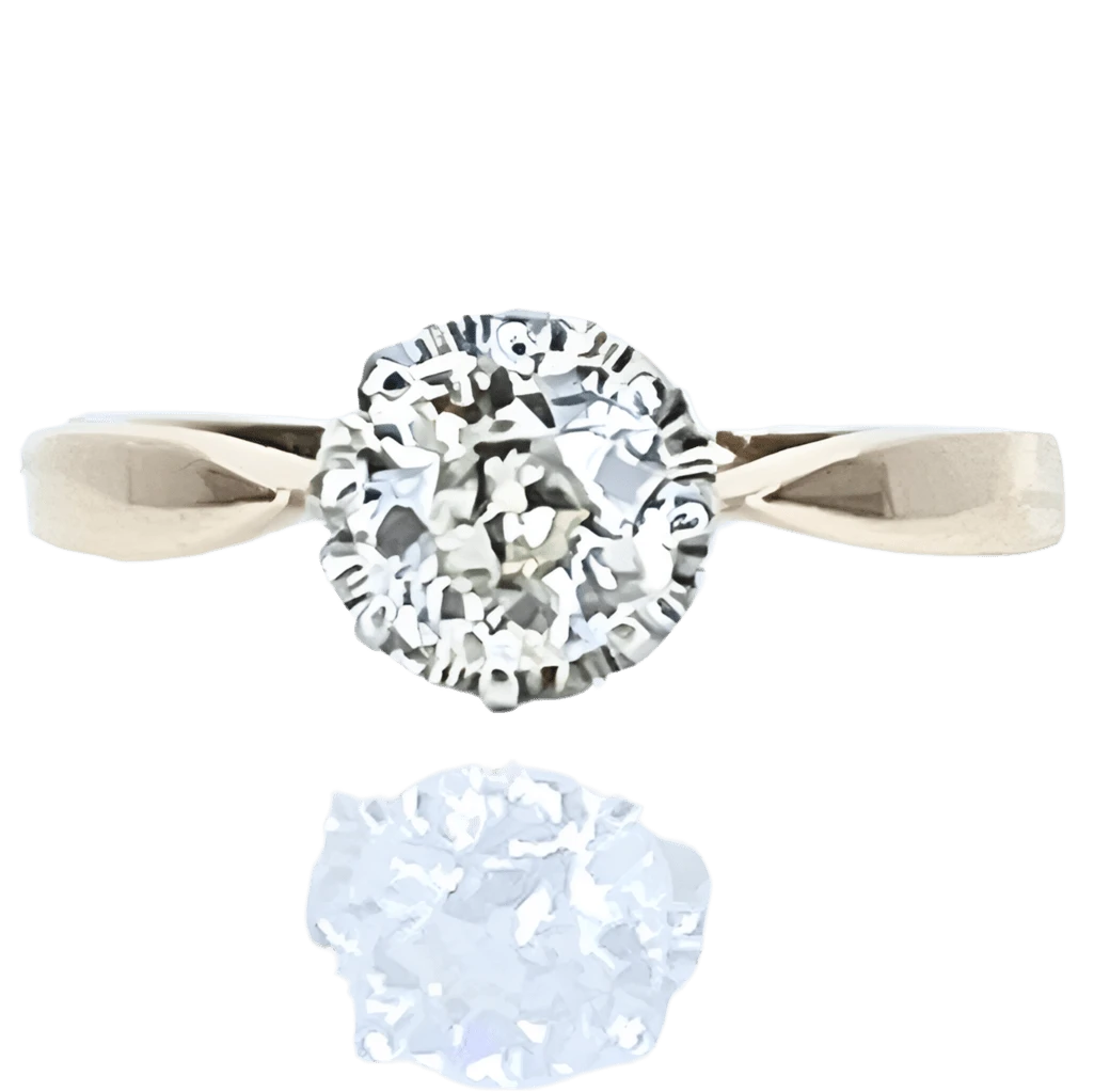 Bague en or jaune et platine ornée d’un diamant de taille ancienne