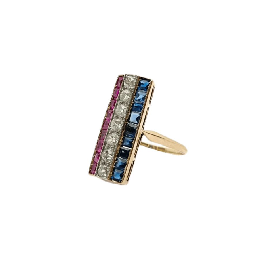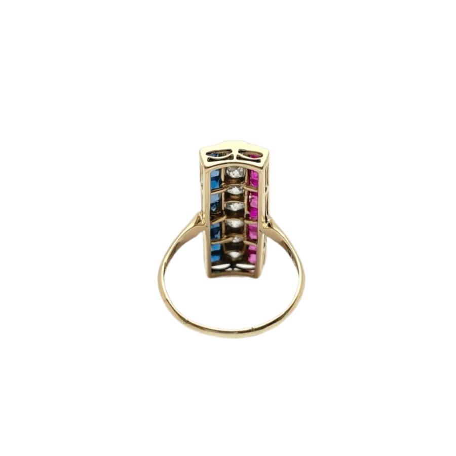 Bague En Or Rose, Saphirs, Rubis Et Diamants