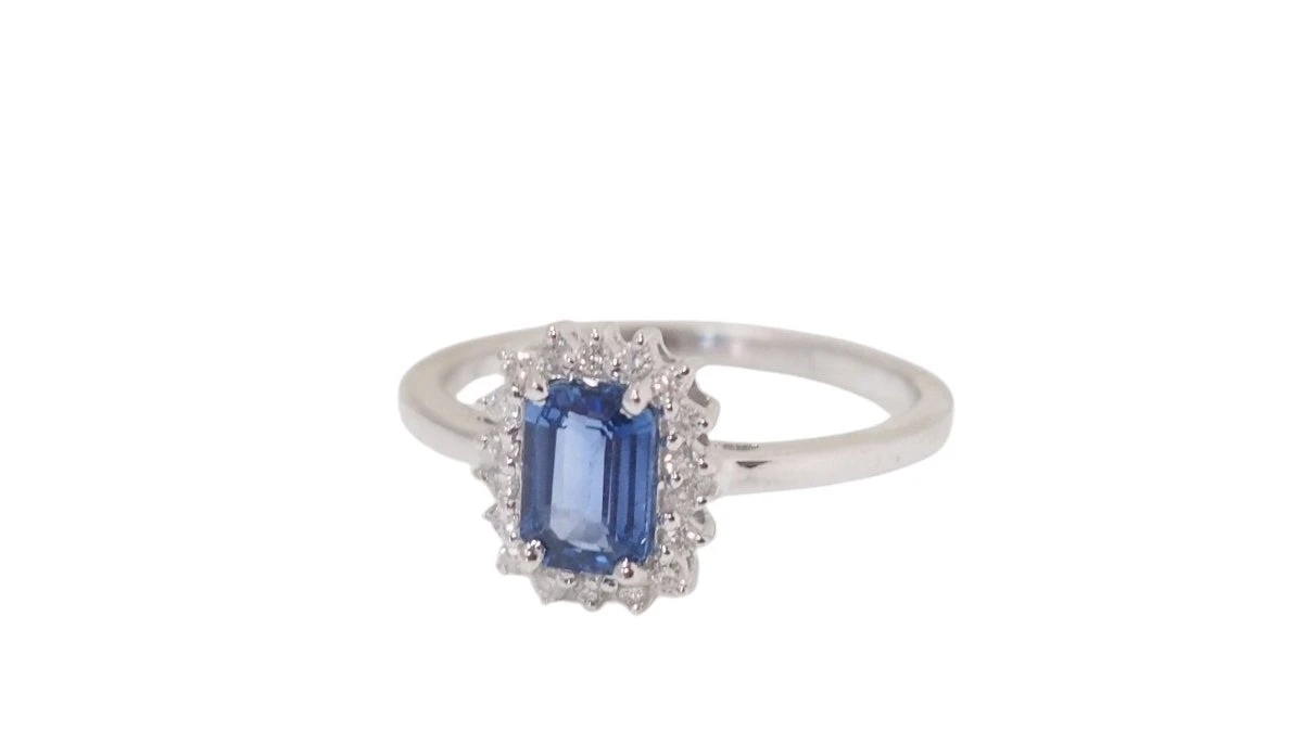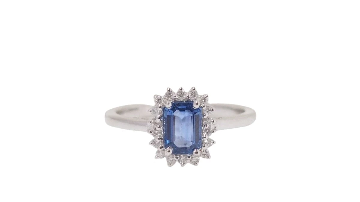 Bague Entourage En Or Blanc, Saphir De Ceylan Et Diamants