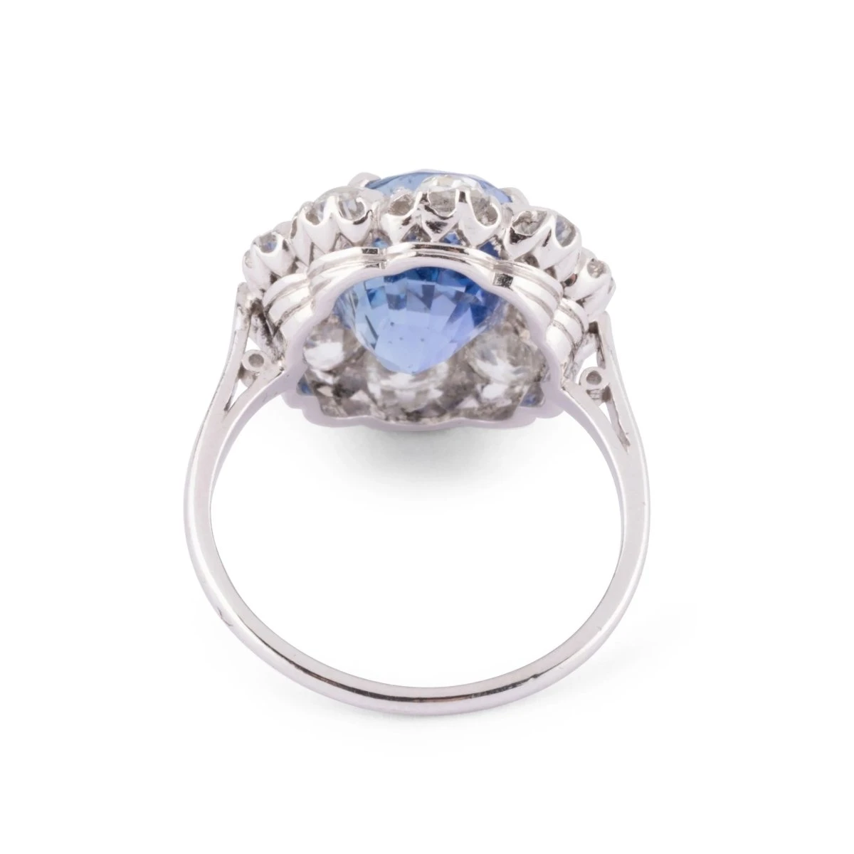 Bague platine ornée d’un saphir naturel de Ceylan ovale et diamant taille ancienne avec certificat du laboratoire de Paris LFG du 27/09/2019 n°363309.