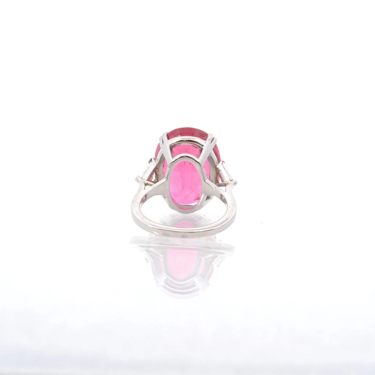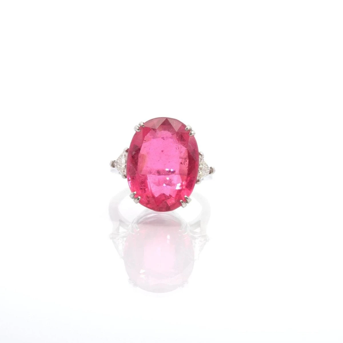 Bague Entourage en platine, sertie d’une tourmaline rose de 13,44 carats et de 2 diamants trianglesÂ