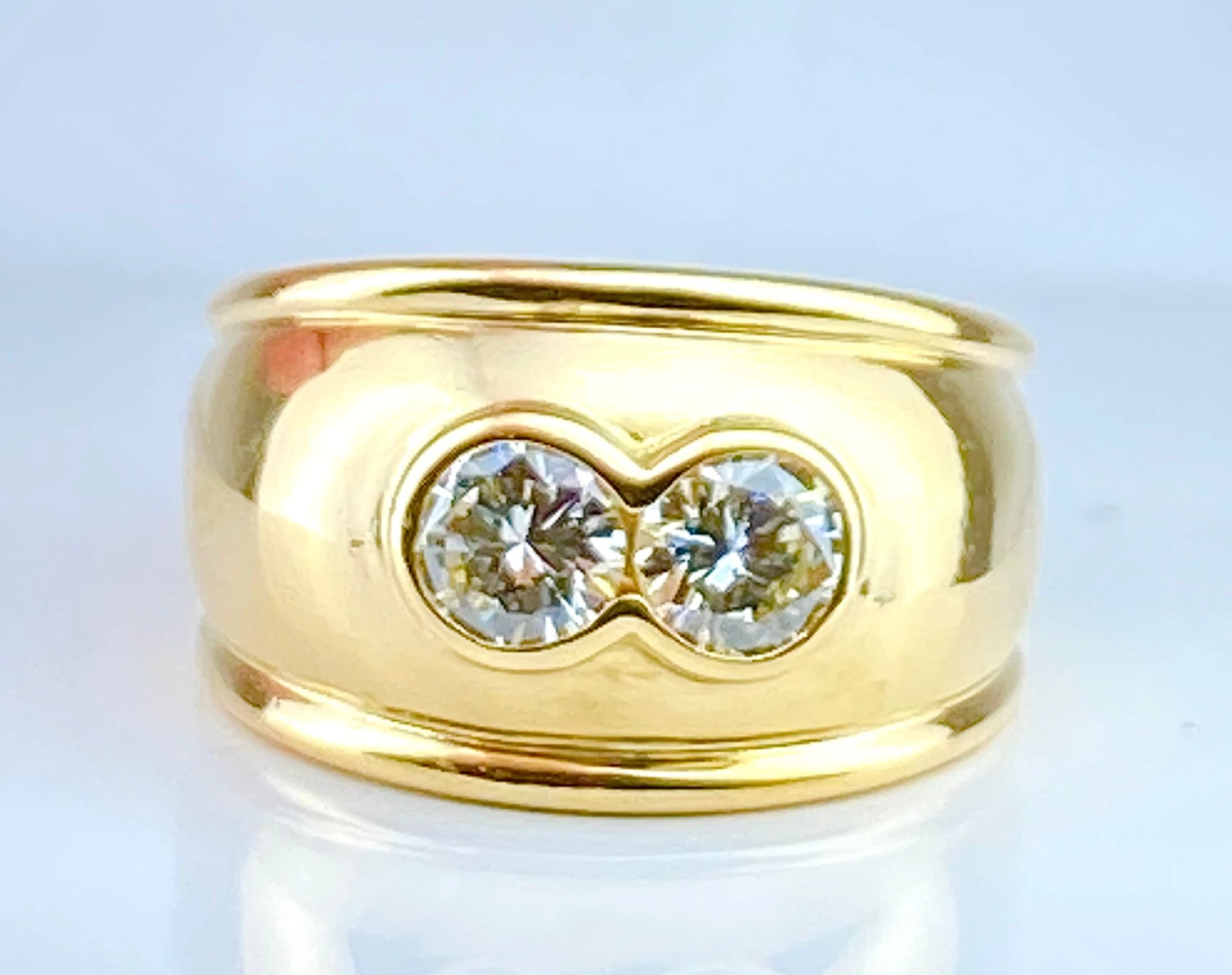 Bague jonc/ bandeau en or jaune 18 carats ornée de 2 diamants poids: 2 x0,45 carat environ, couleur et pureté estimées G/H VS.
