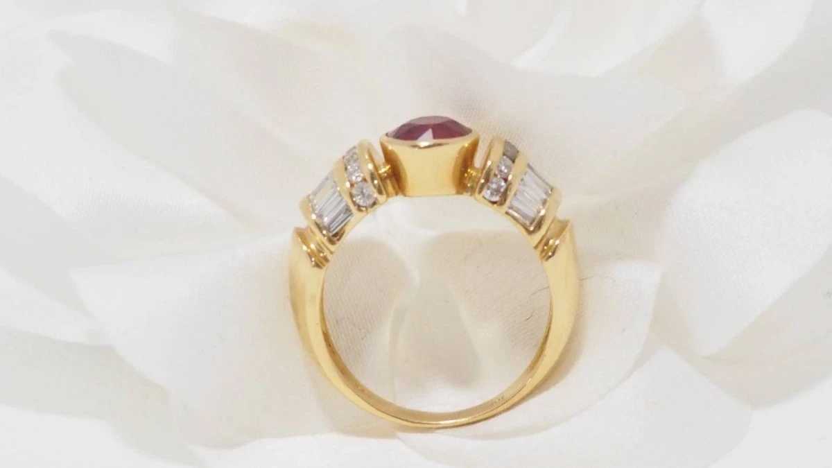Bague Jonc En Or Jaune, Rubis Naturel Et Diamants