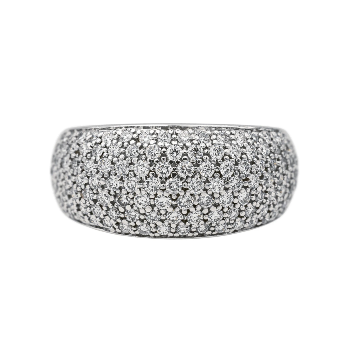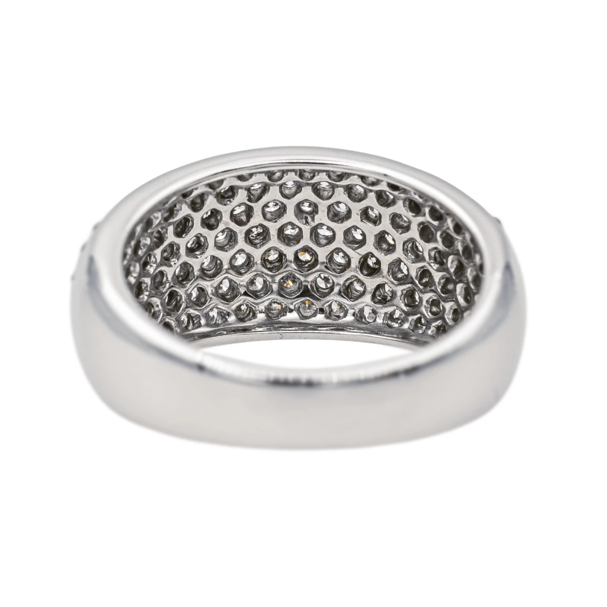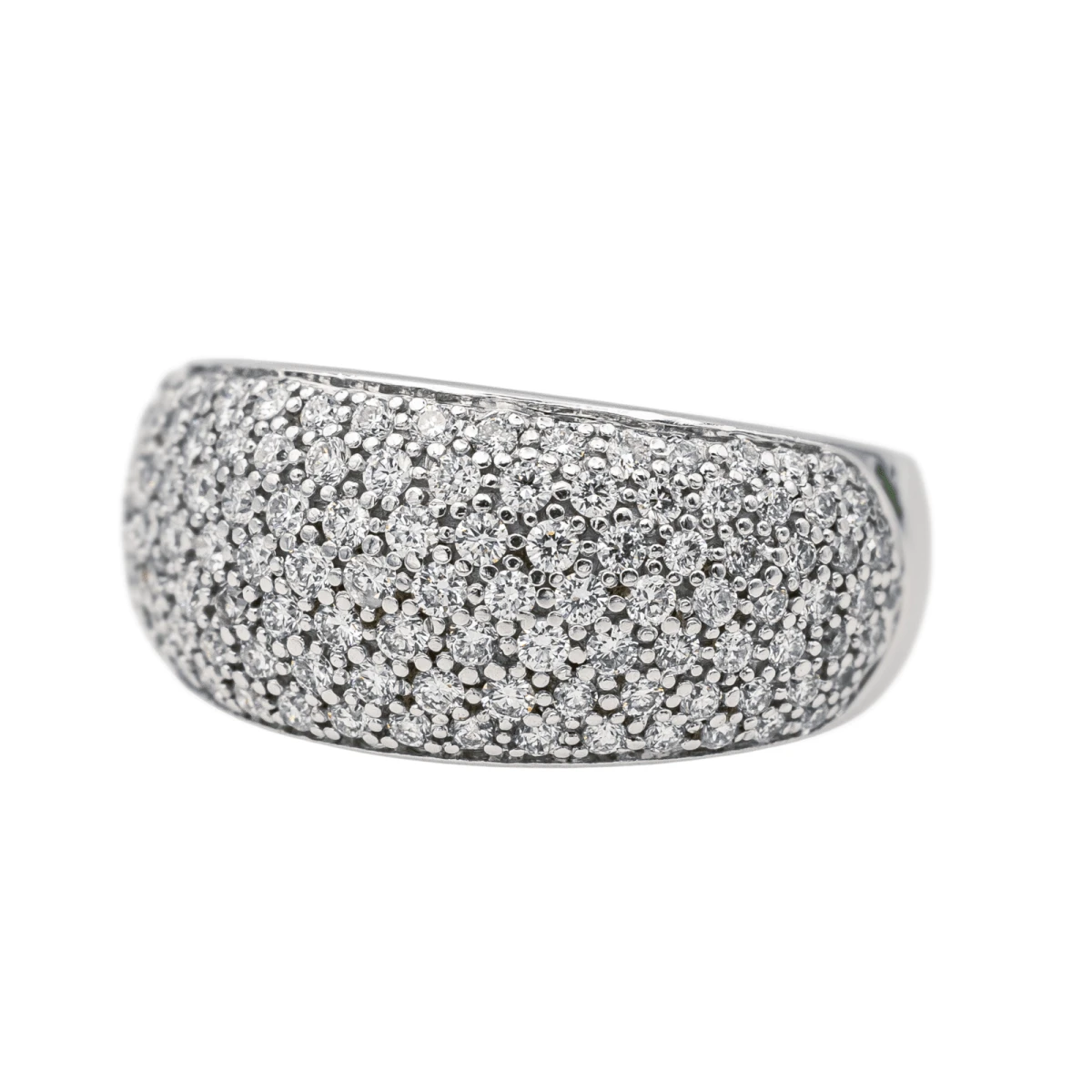 Bague signée de la Maison Mauboussin en or blanc 750 millièmes (18 carats). modèle C’est toi la Star. pavée de diamants. 100 diamants taille brillant. d’un poids total d’environ 1.00 ct. (chaque diamant d’un poids d’environ 0.01 ct). largeur sur le dessus : 1.03 cm. tour de doigt : 54. poids total : 7.21 g. poinçon tête d’aigle. numérotée. excellent état
