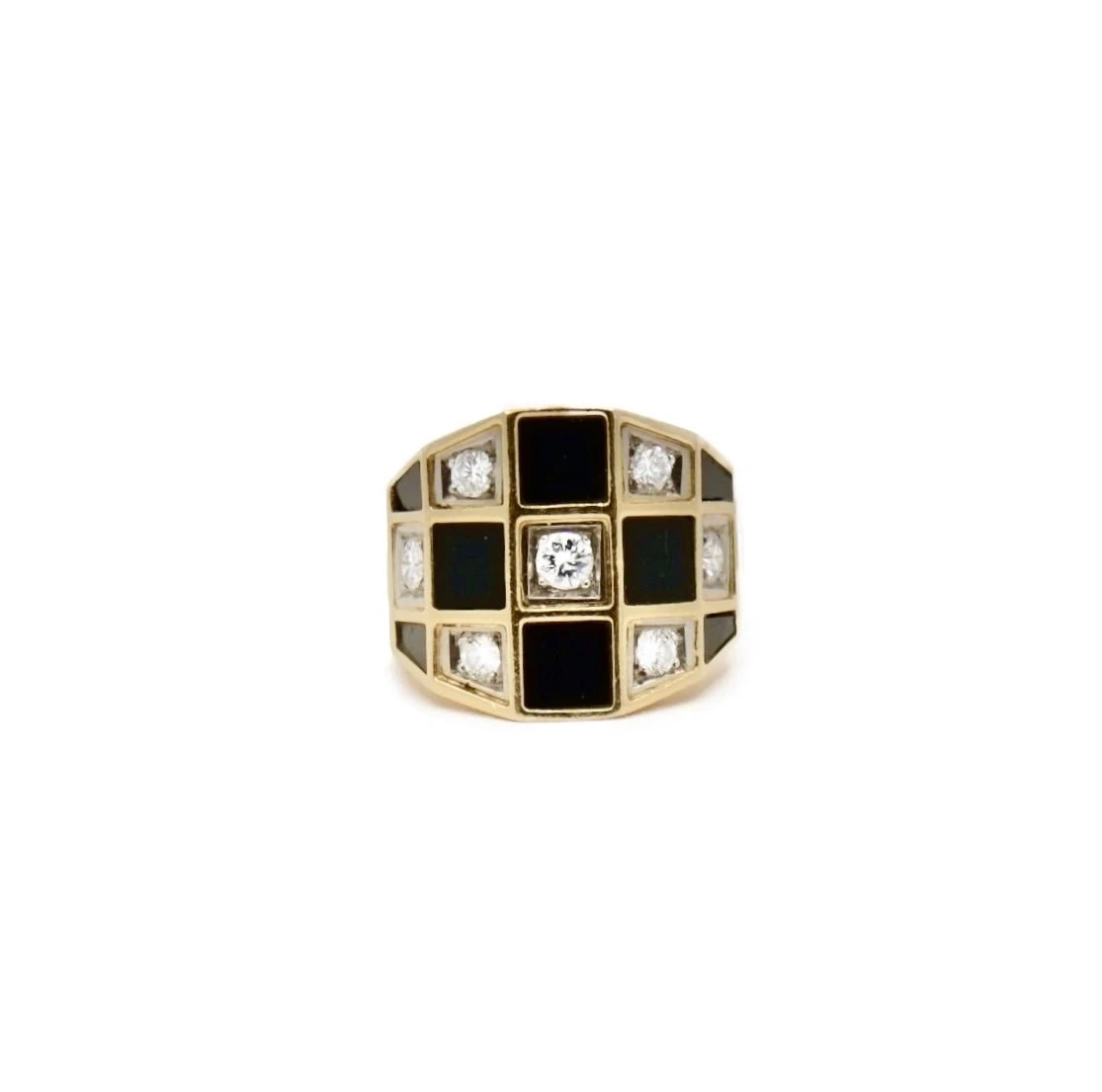 Bague Jonc VAN CLEEF & ARPELS. en or jaune 18 carats, ornée d’onyx et de diamants taille brillant