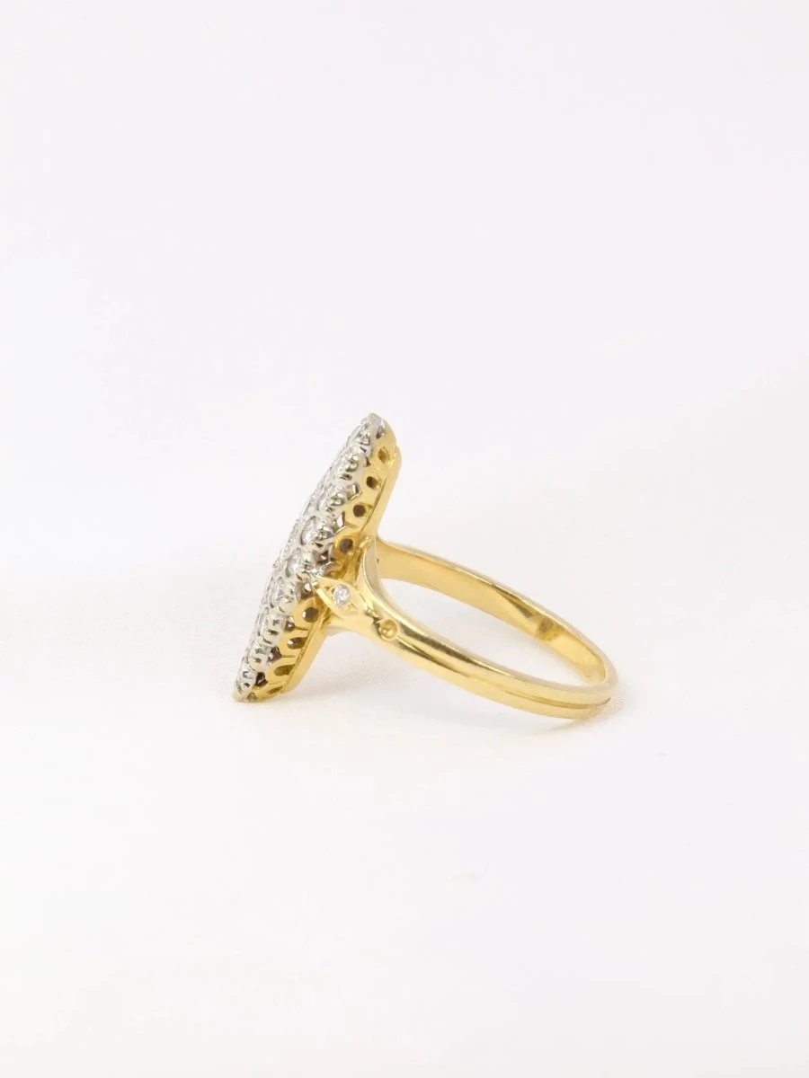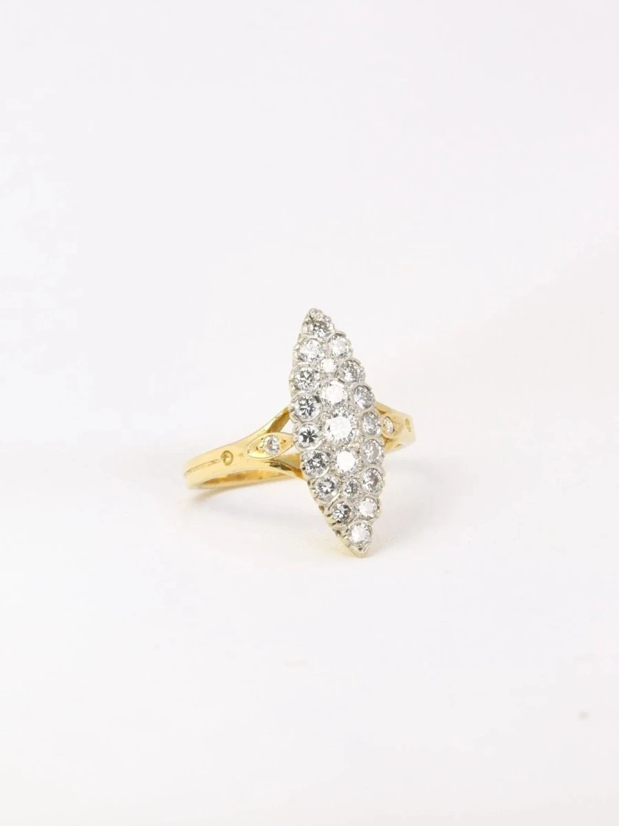 Bague marquise en or jaune 18k (750°/°°) pavée d’environ 0,4 ct de diamants. Travail français vintage.Â