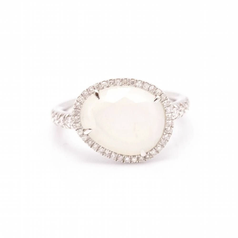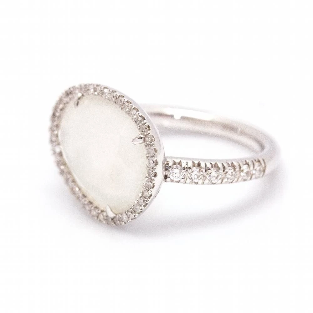 Bague de la collection MIMI MILANO en or blanc avec diamants et pierre de lune pour femme | Diamants taille brillant avec un poids total de 0,33cts en qualité G/Vs | Taille 14, cette bague peut être redimensionnée, demandez un devis | Or blanc 18kt | 4,98 grammes |