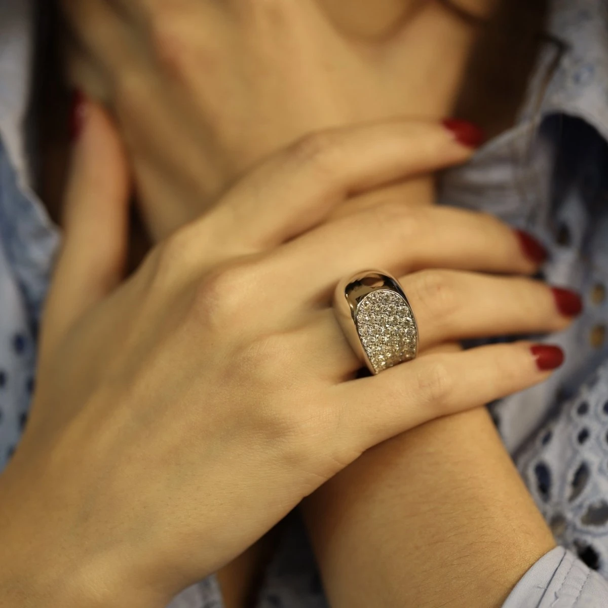 Bague Pavée FRED « Candy » En Or Gris Et Diamants