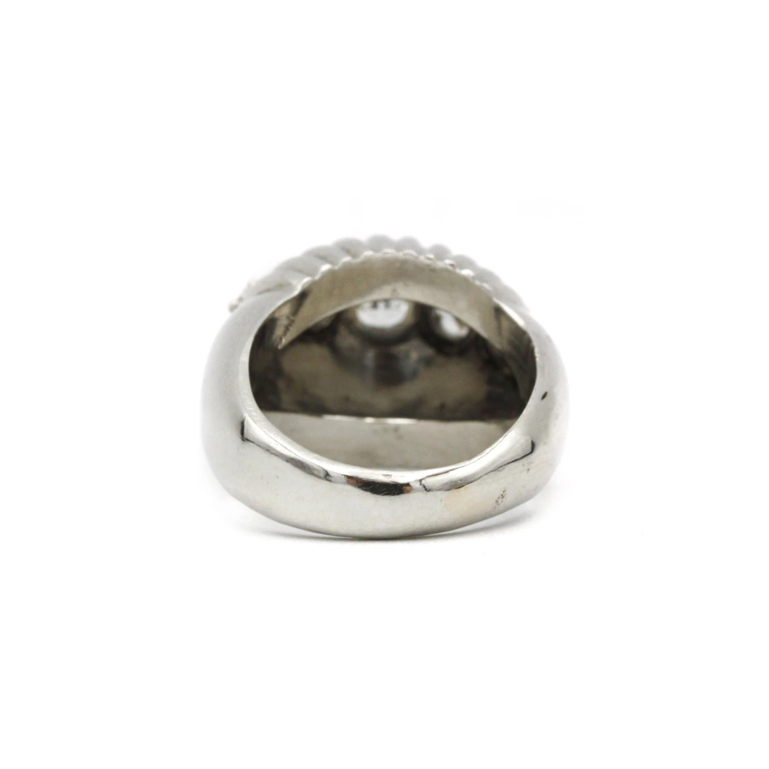 Bague bombée en platine 950‰ sertie de 5 diamants taille ancienne (1,00 carat environ) qualité H VS.