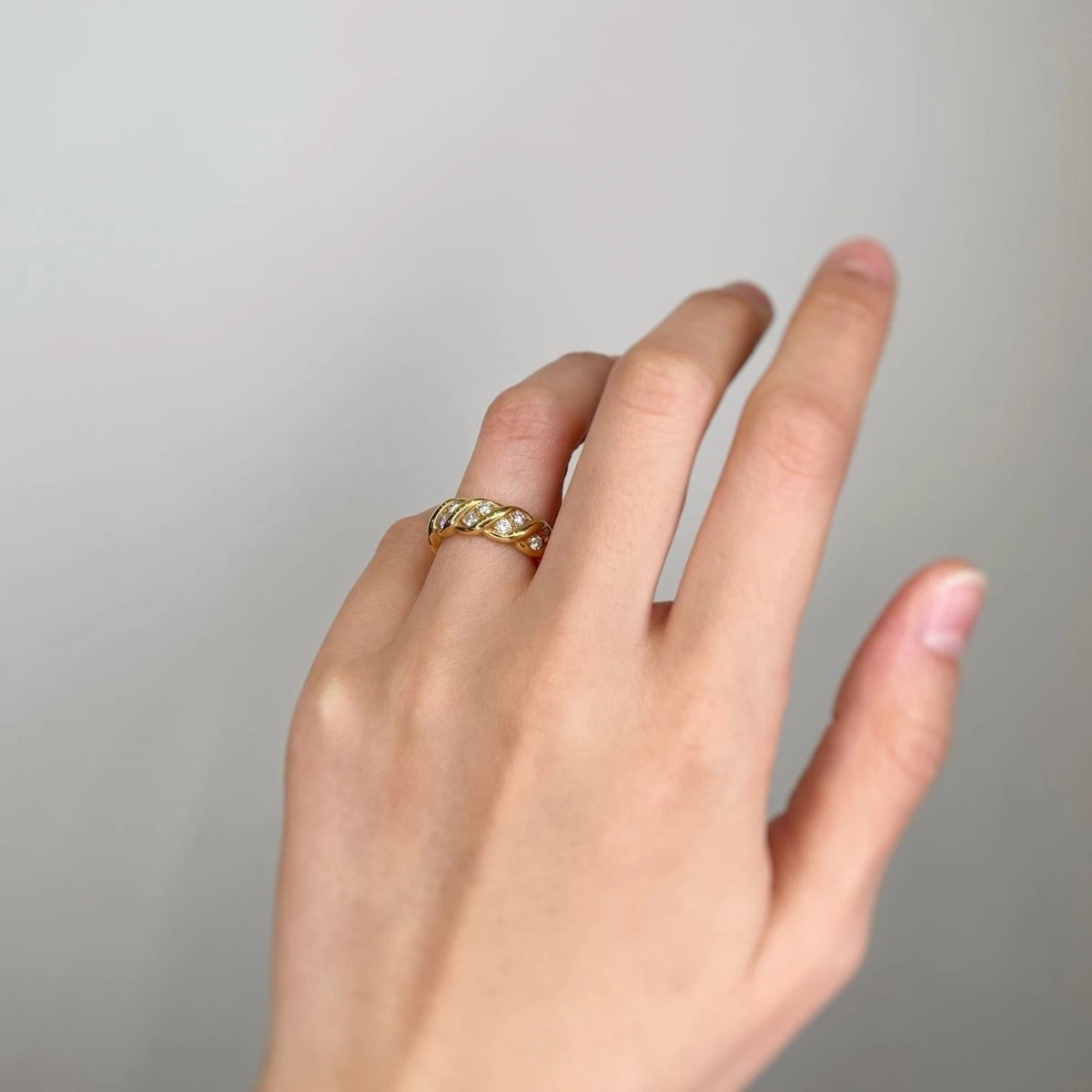 Bague torsadée en or jaune 750‰, sertie de 18 diamants (0,60 carat environ).