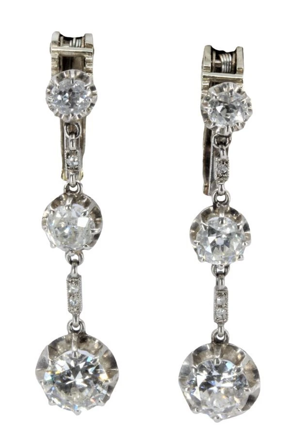 Boucles D’oreilles Art-déco Diamants En Or Blanc