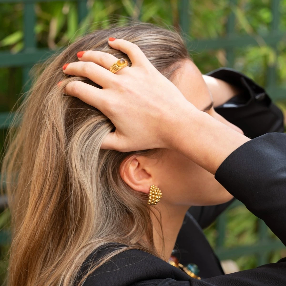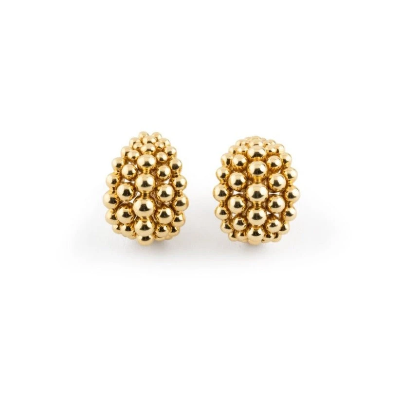 Boucles d’oreilles BOUCHERON en or jaune 18 carats composé de 5 rangs bombés de perles. Signées.