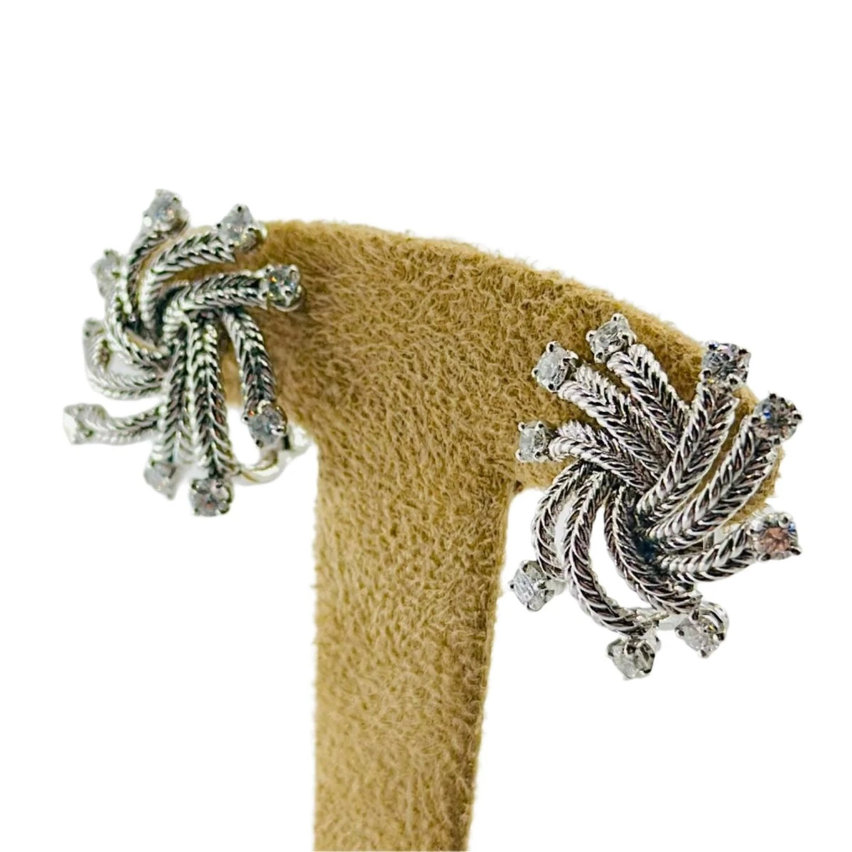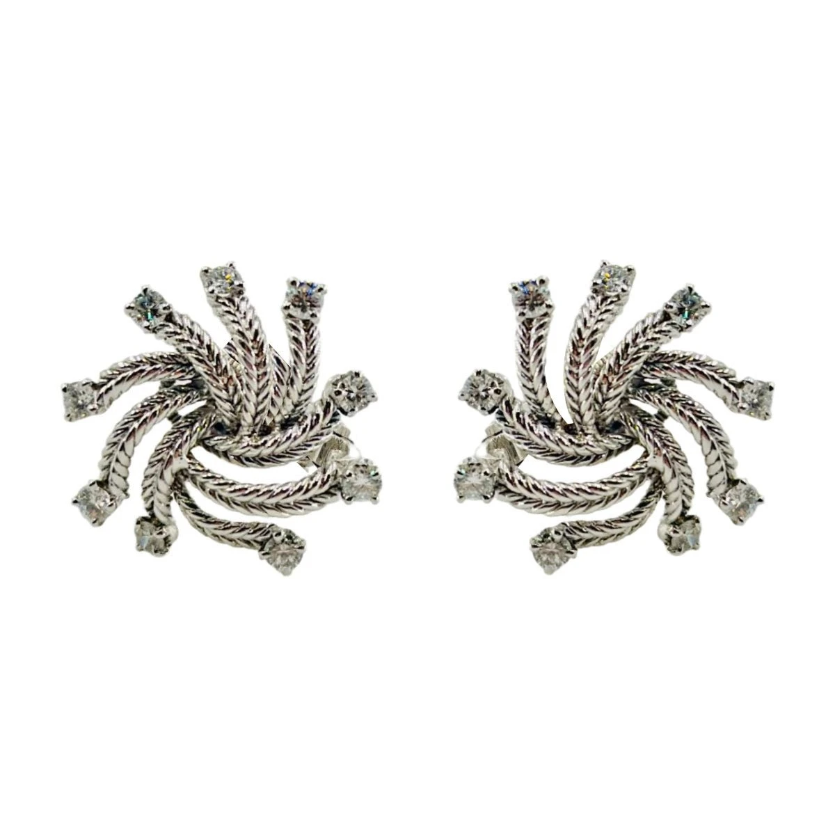 Boucles d’oreilles BOUCHERON en or blanc torsadé 18 carats et diamants. Système à clip.Â
