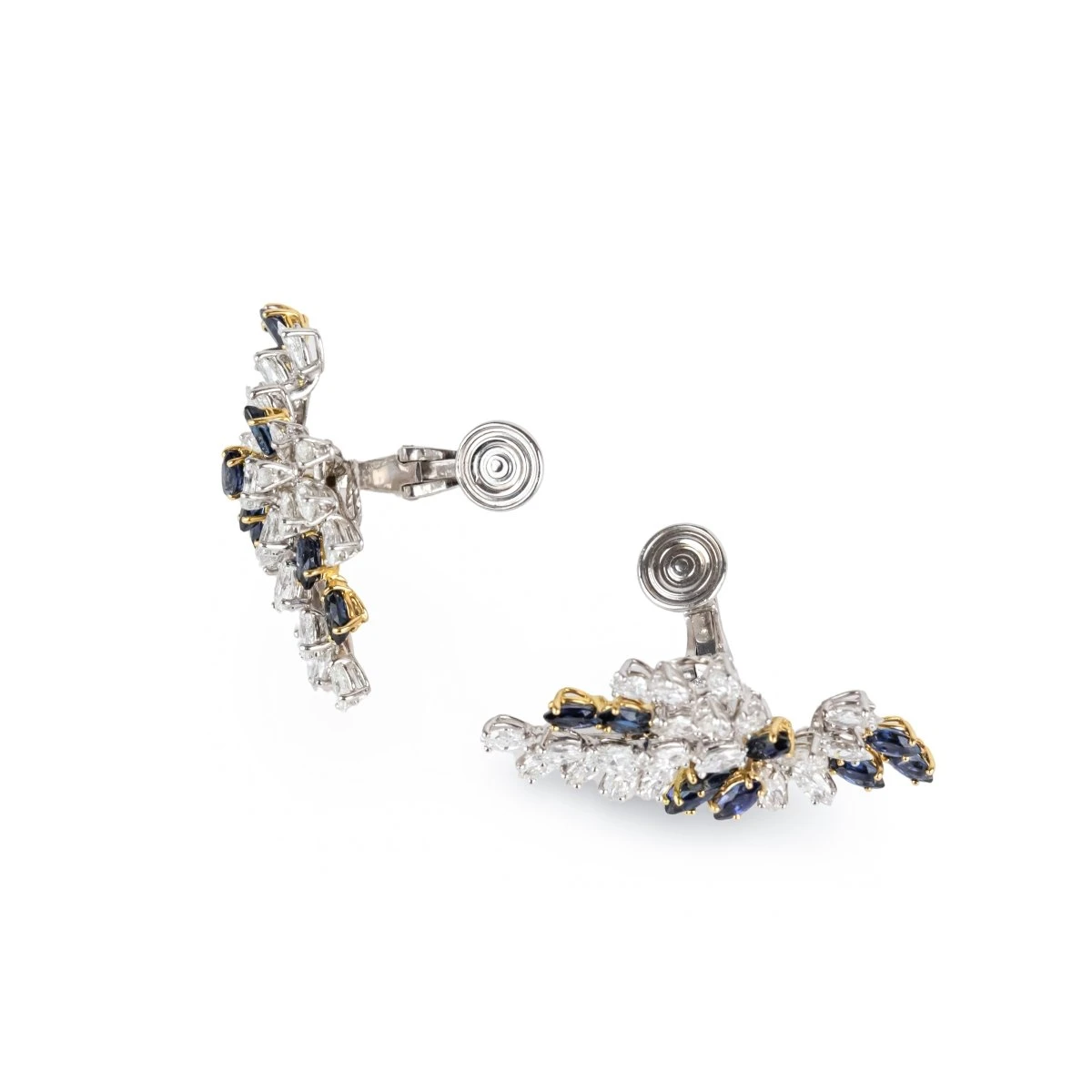 Boucles D’oreilles Clip CHAUMET En Or Blanc, Or Jaune, Platine, Saphirs Et Diamants