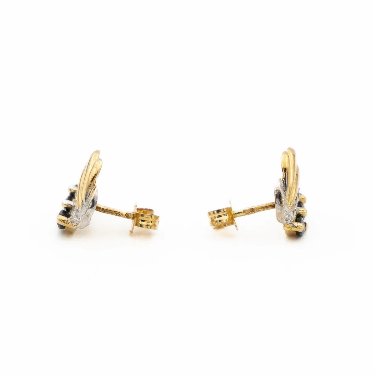 Boucles D’oreilles Clou En Or Jaune, Or Blanc, Saphirs Et Diamants