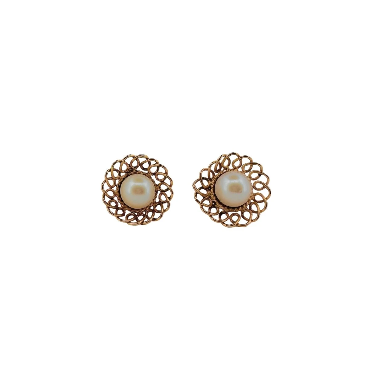 Boucles d’oreilles Fleur en or jaune 18 carats ajouré orné d’une perle de culture.