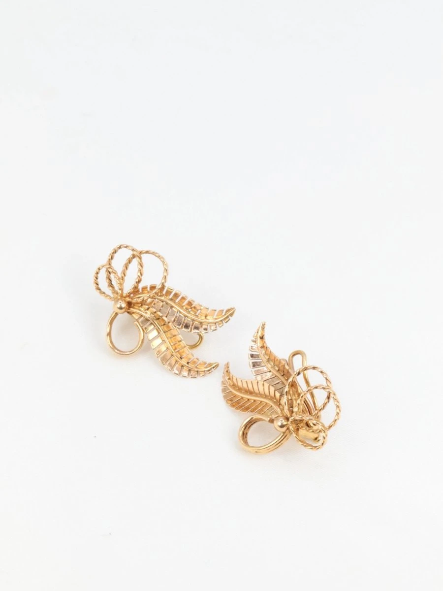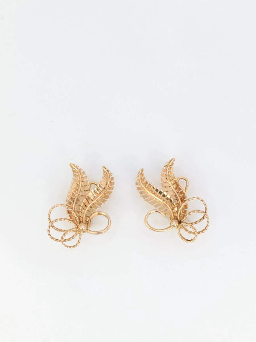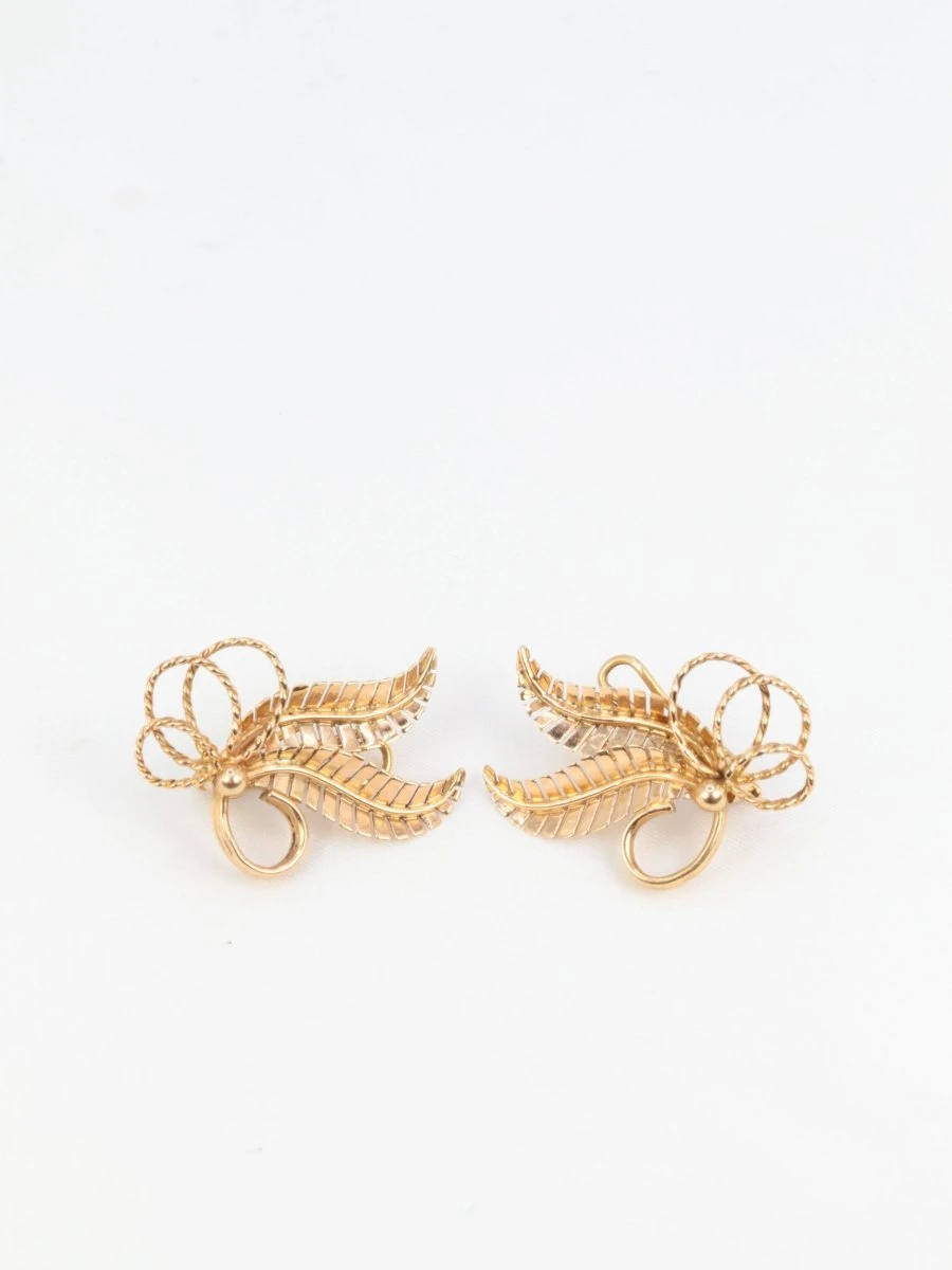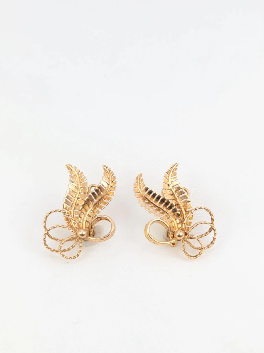 Paire de boucles d’oreilles en or rose 18k (750°/°°) figurant un motif floral. Travail français des années 1950. Présence du poinçon tête d’aigleDimensions : 2,5 x 1,9cmPoids net : 6,07 grammes