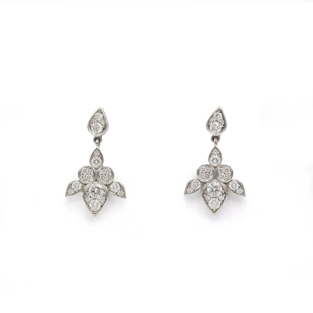 Boucles d’oreilles en or blanc 750‰ signées CARTIER et numérotées, modèle LOTUS GM, datées de l’année 2012, serties de 44 diamants taille brillant.