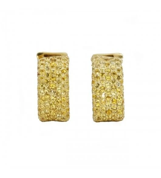 Imposante paire de boucles d’oreilles en or jaune 750. pavée d’environ 4 carats de saphirs jaune.