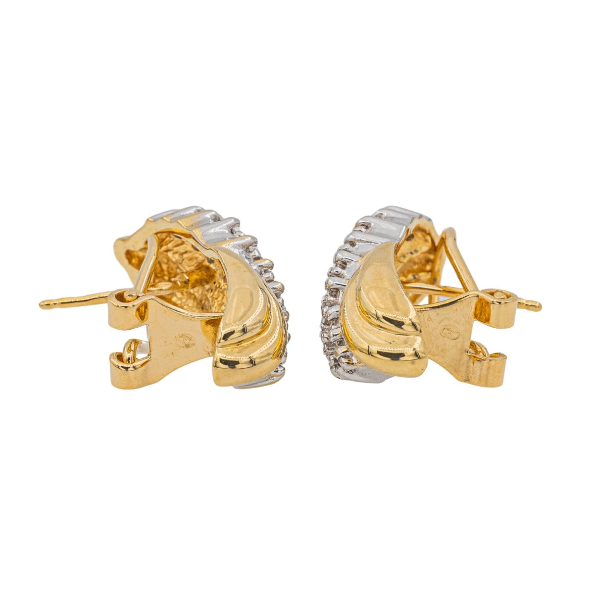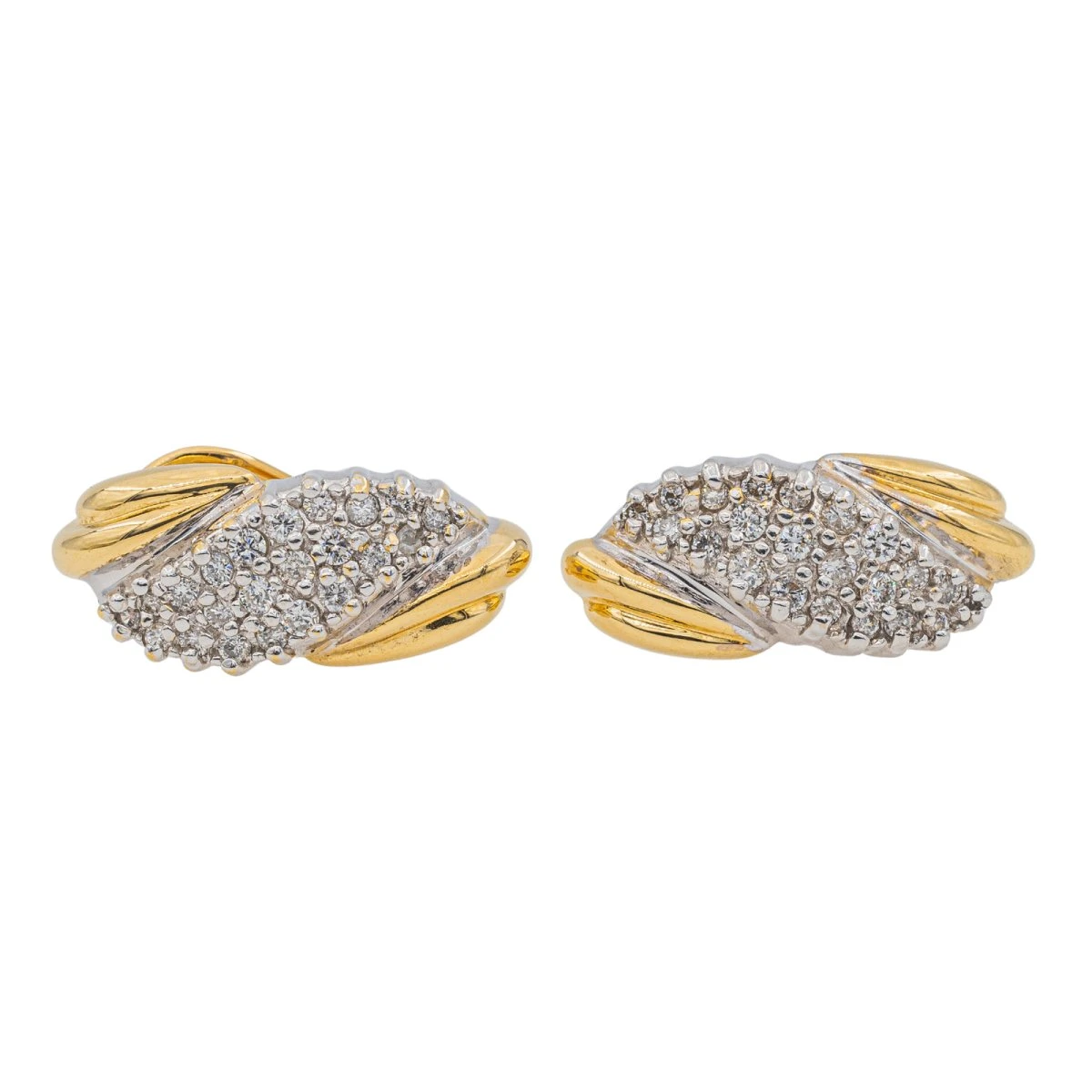 Boucles D’oreilles Pavées En Or Jaune Et Blanc Et Diamant