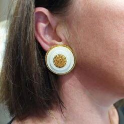 Boucles D’oreilles Clips Pétales De Rose JAR En Aluminium Et Or Jaune