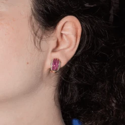 Boucles D’oreilles En Or Jaune, émeraude, Diamant Et Améthyste