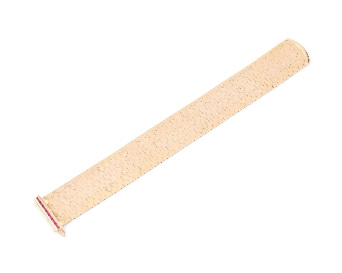 Bracelet Ceinture en or jaune, avec des rubis servant de fermoir.