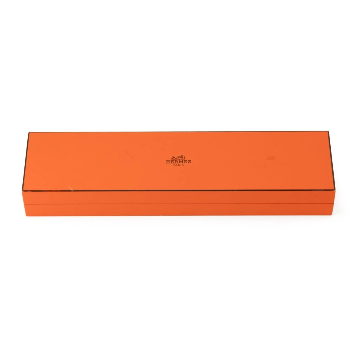 Le bracelet est signé HERMÈS et livré dans son écrin d’origine, un détail qui souligne sa qualité et son authenticité.