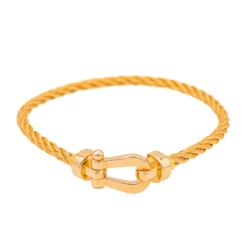 Bracelet signé de la Maison Fred. moyen modèle Force 10 ; câble. embouts et manille en or rose 750 millièmes (18 carats). dimensions de la manille : 1 x 0.85 cm. poids de la manille : 3.19 g. dimensions du câble : 14.00 x 0.28 cm. poids du câble : 6.65 g. longueur totale : 15 cm. poids total : 9.87 g. numéroté : 1562256. poinçon maître et poinçon tête d’aigle. excellent état