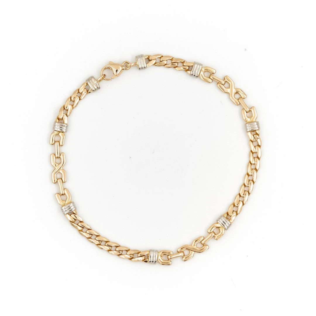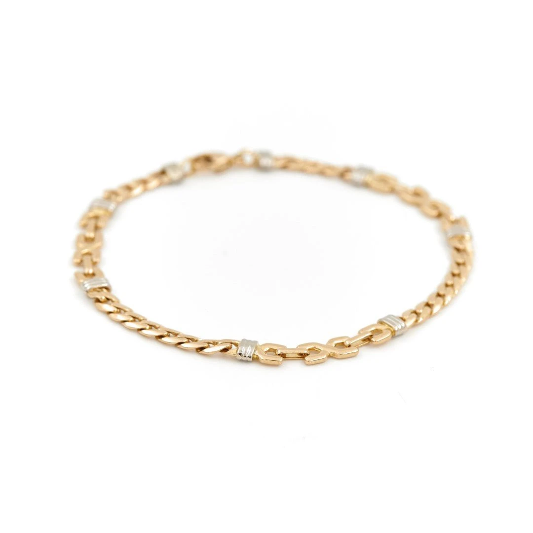 Bracelet Gourmette En Ors Jaune Et Blanc