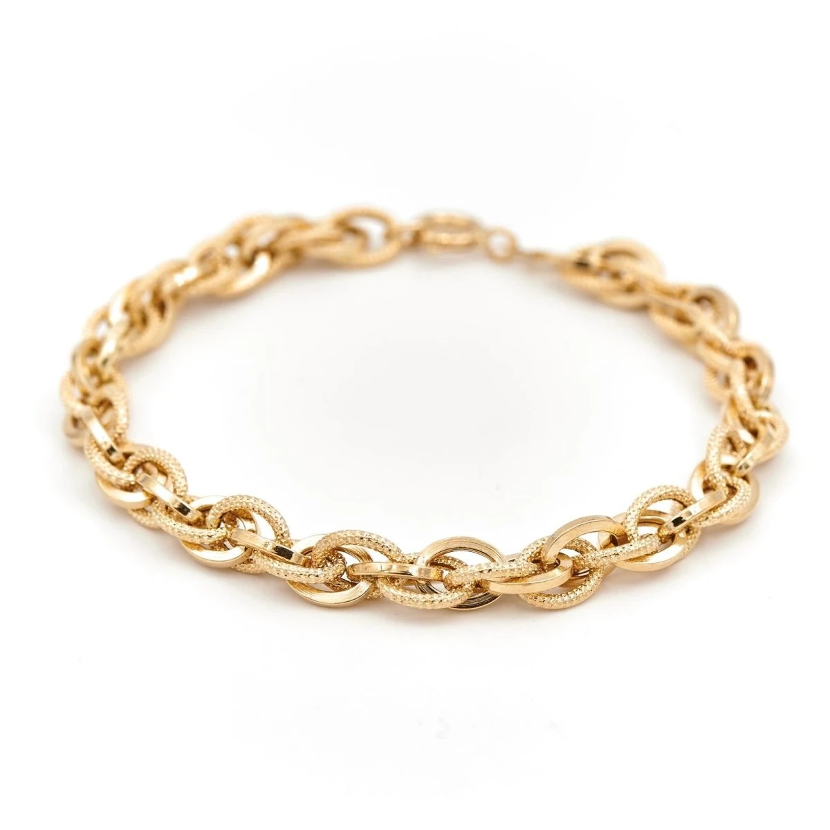 Bracelet Gourmette maille forçat doublée en or jaune ciselé brillant 18 carats.